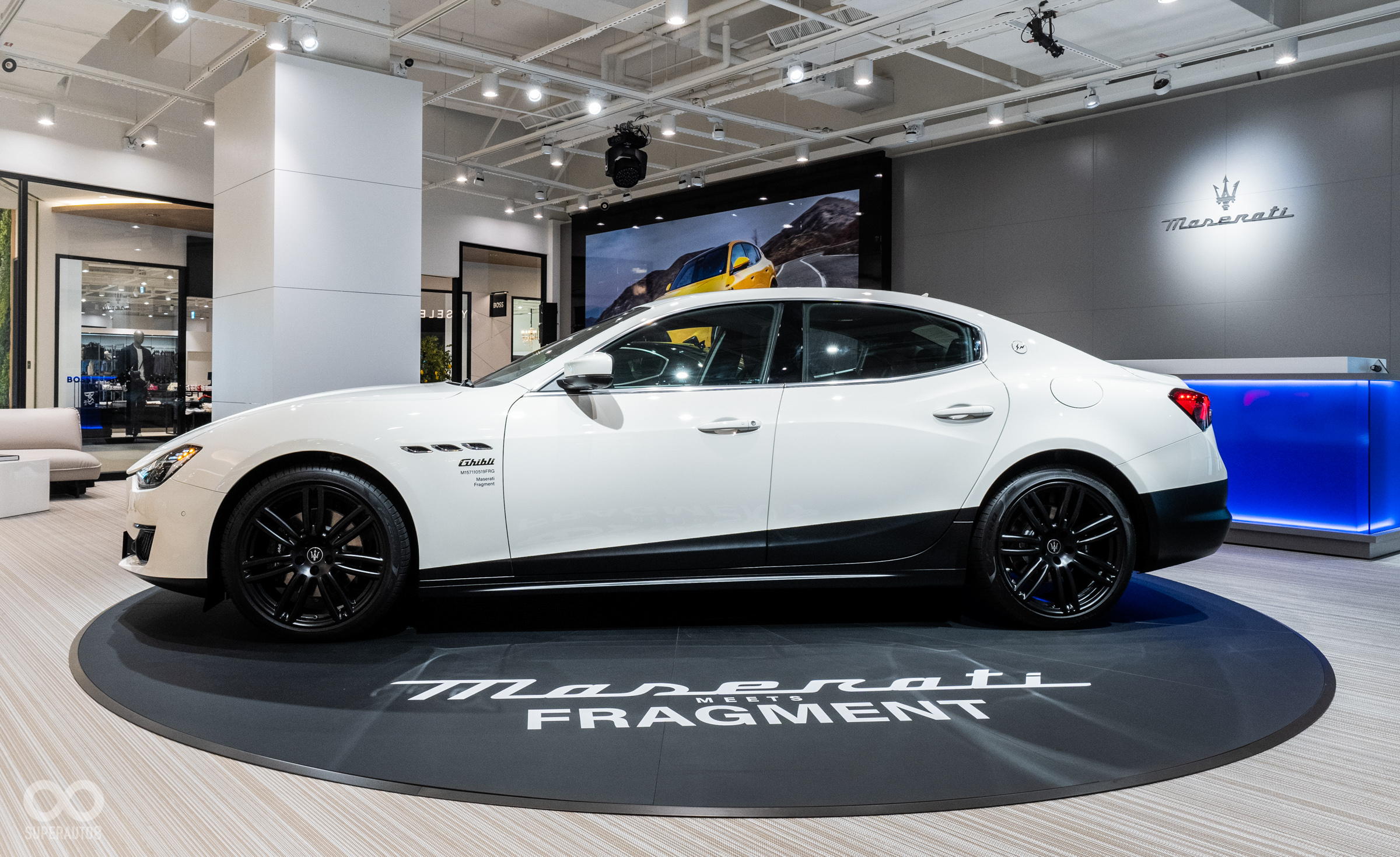 繼先前在【Maserati x 藤原浩】快閃店風光首演的Ghibli Fragment Opera Bianca歌劇白之外,另一款限定車色Opera Nera歌劇黑,也藉由Maserati台南品牌形象館開幕活動首次在台灣亮相,兩款配色都在車身下緣斜切出一道消光處理的黑色區塊,突顯打破框架的潮流態度之餘,也巧妙承接同為消光黑的20” Urano限定輪圈;此外,重現第一代Ghibli經典網狀格柵結構的車頭進氣壩右下角附有Fragment銘牌,C柱上三叉戟廠徽也改為雙閃電標記,前葉子版散熱鰭孔下方則轉印上專屬文樣:Ghibli M157110519FRG Maserati Fragment。其中M157為Ghibli的車型代碼;110519記錄藤原浩於2019年11月5日首次到訪義大利蒙地拿Maserati 設計中心;而FRG則是 Fragment的縮寫。