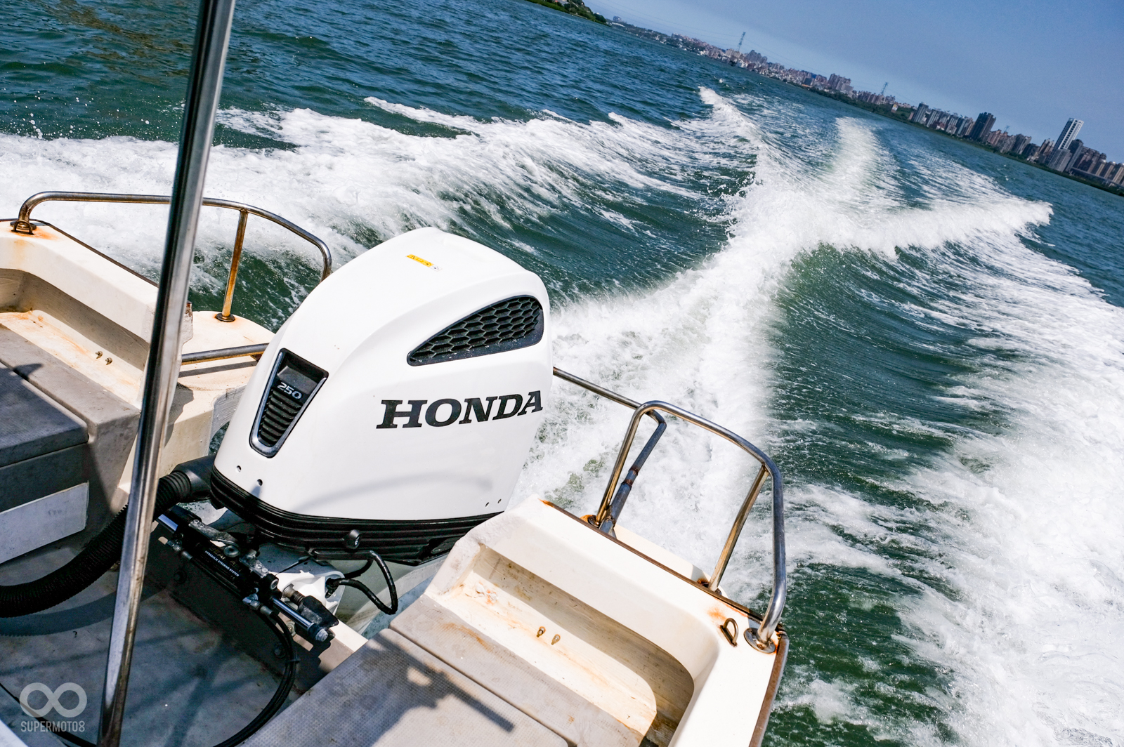 這次Honda Taiwan就引進了BF90D、BF250D兩款全新的船外機引擎進入台灣市場銷售,同時也在八里的大舟遊艇碼頭舉辦試乘體驗活動,直接把船開上淡水河口(試乘體驗全程皆有專業執照駕駛陪同與指導)!