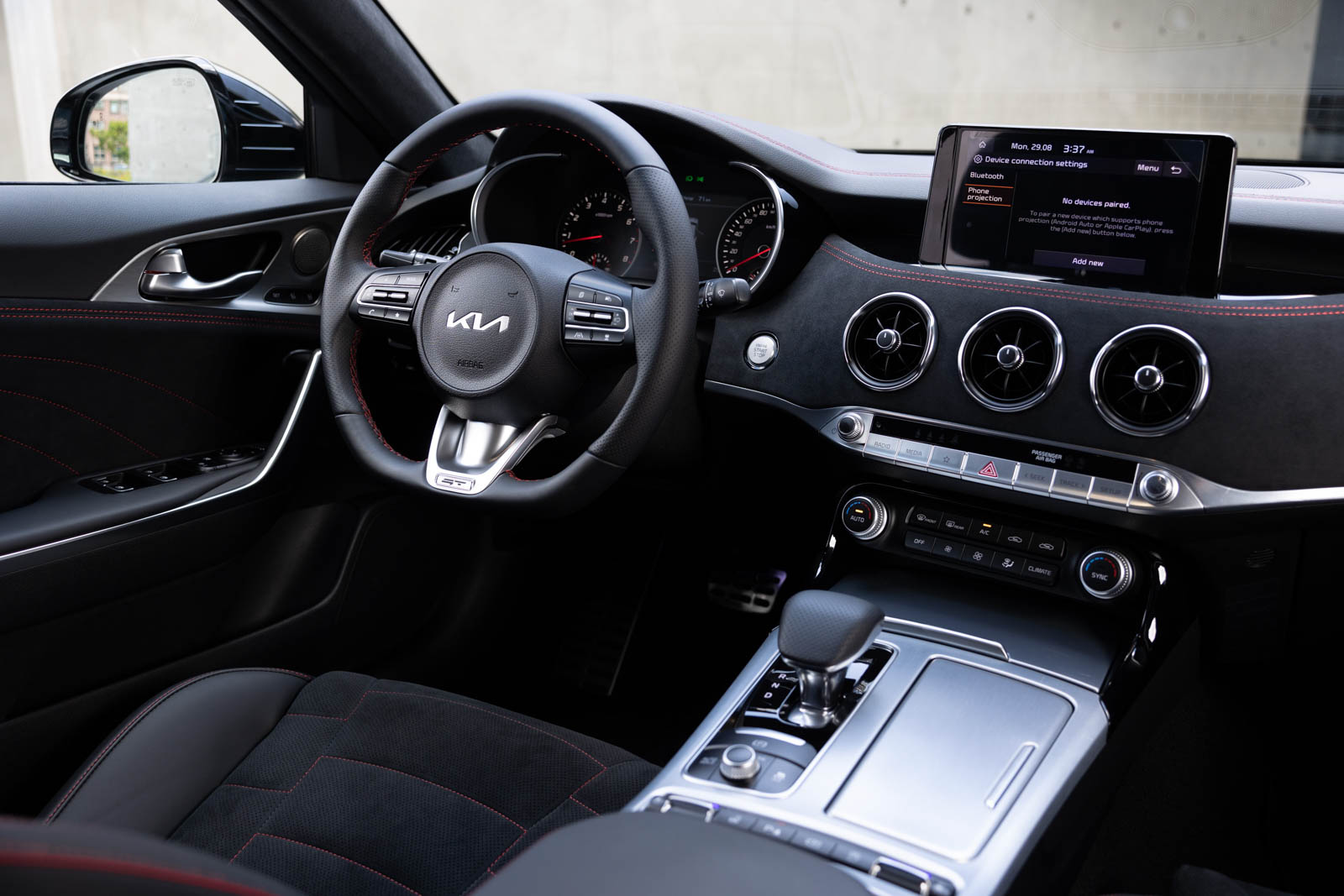 The Stinger具備形質俱佳的豪華旗艦車艙格局,2.0 GT-line及3.3 GT AWD車型搭載8吋懸浮式觸控螢幕與7吋全整合智慧型數位儀表板,並支援Apple CarPlayTM與Android AutoTM無線連接,搭配頂級音響品牌Harmon®/Kardon®環場音響系統,讓全車乘客沉浸在劇院級的聽覺饗宴中。