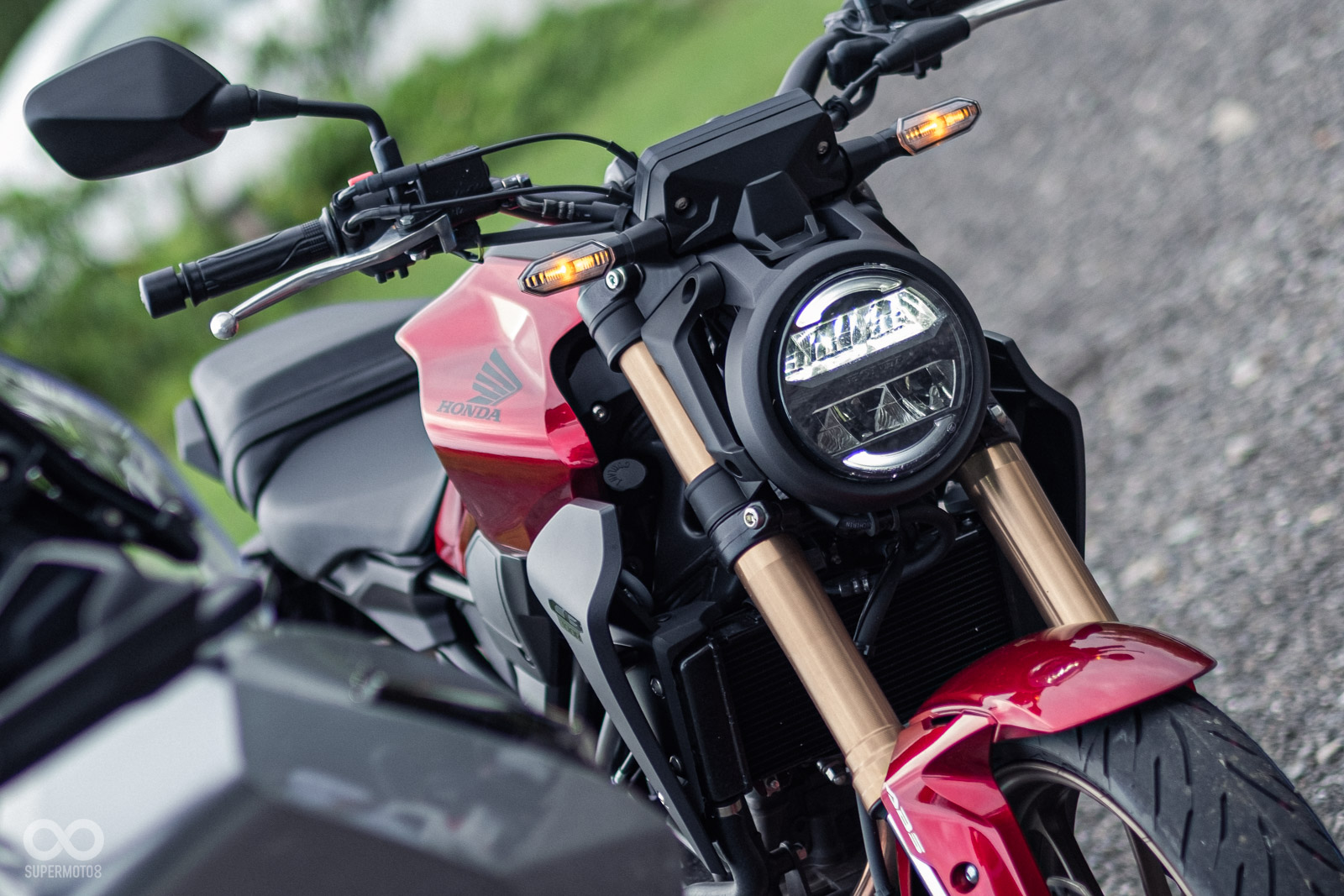 首先,外觀上台灣本田導入的車型在前叉、輪圈都使用古銅色;而內部零件上更是有不小的差異,像是前懸吊、輪圈、後碟盤等都不一樣,前懸吊部分更是有SHOWA和Endurance兩個廠牌的差異,此外在ABS、ECU調校上台灣版本與貿易商導入版本也有不小的差異。