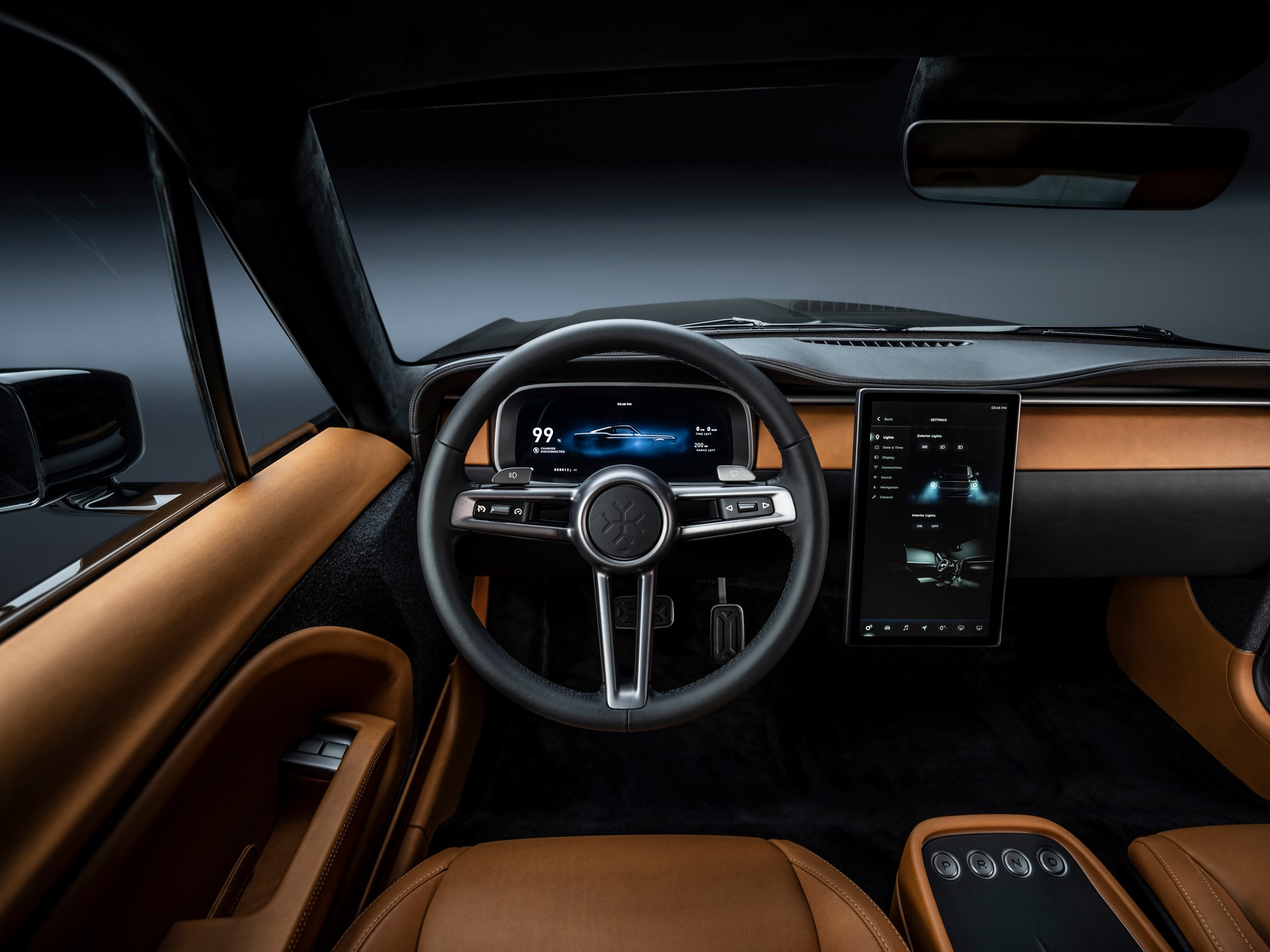 動力方面令人印象深刻,由一具63kWh電池組構成動力來源,搭配四組電動馬達可提供536匹最大馬力和1,500牛頓米最大扭力。Charge Cars表示,加速性能可在3.99秒完成0-100公里/小時加速,充滿一次電可以行駛約322公里,通過直流快速充電從0至80%需一個小時左右。