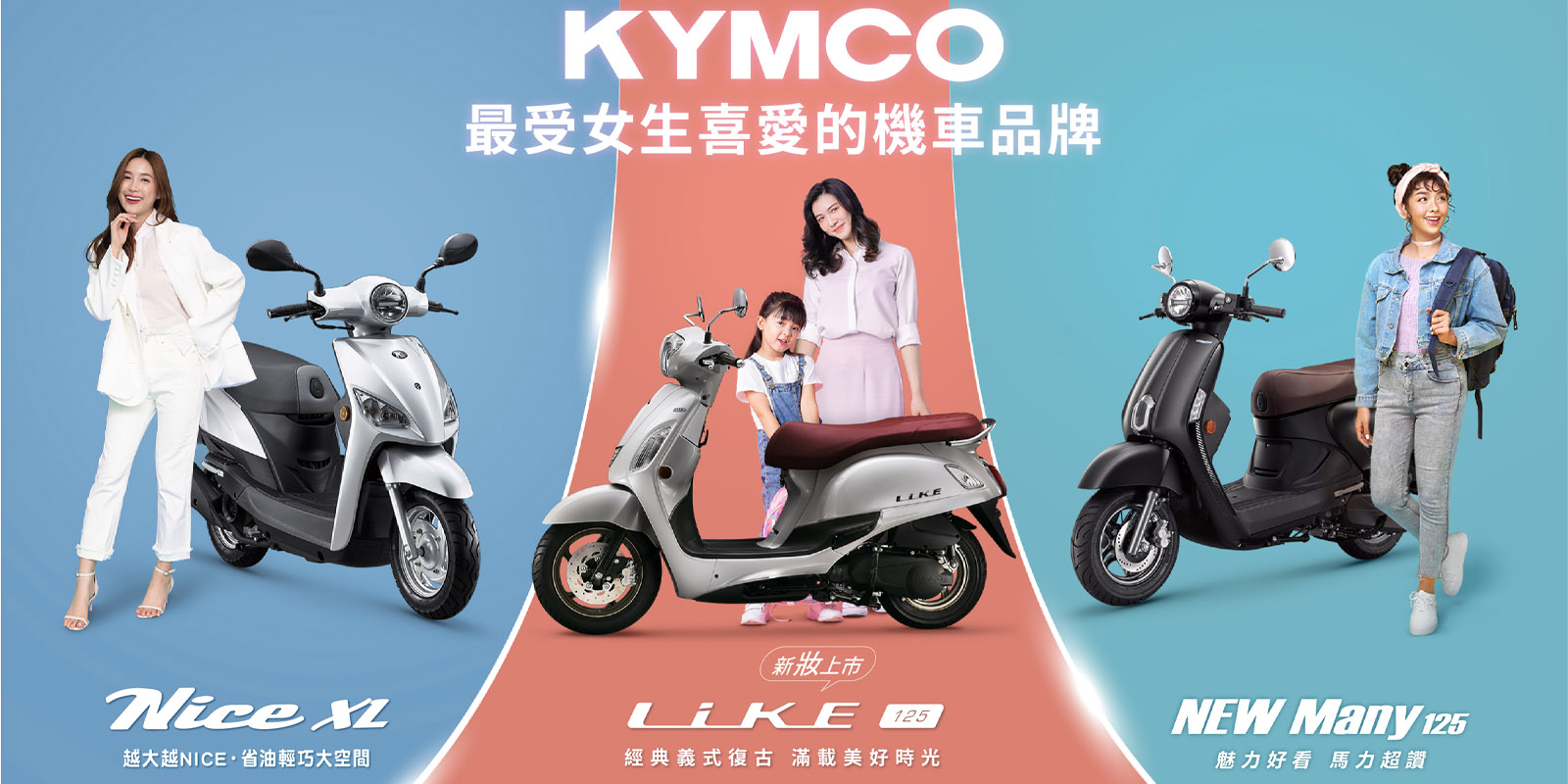 為回饋女性朋友多年來的支持,KYMCO此次特別針對New Many 125、LIKE 125與Nice XL三款女性最愛車款推出專屬優惠,活動內容如下: