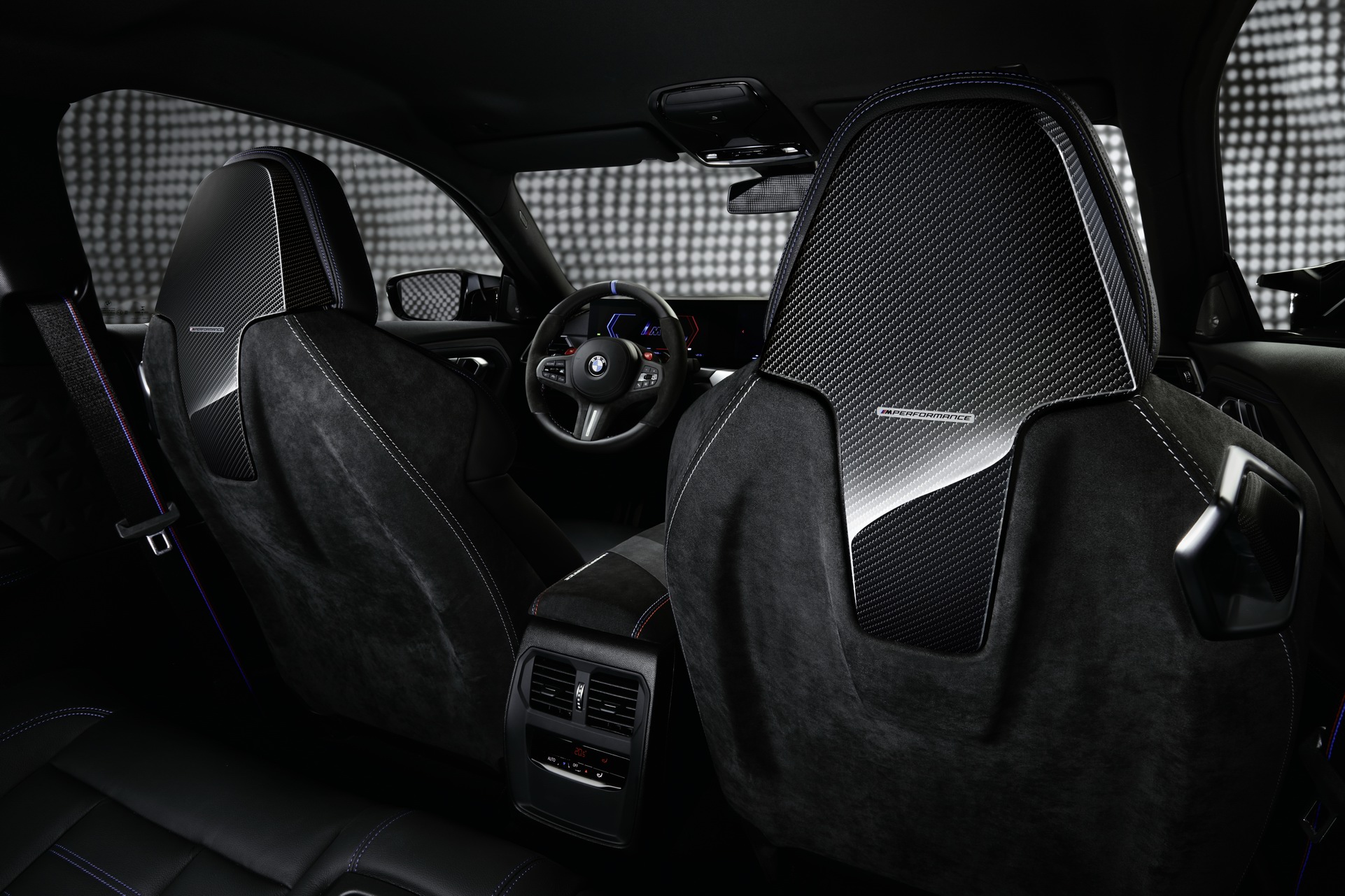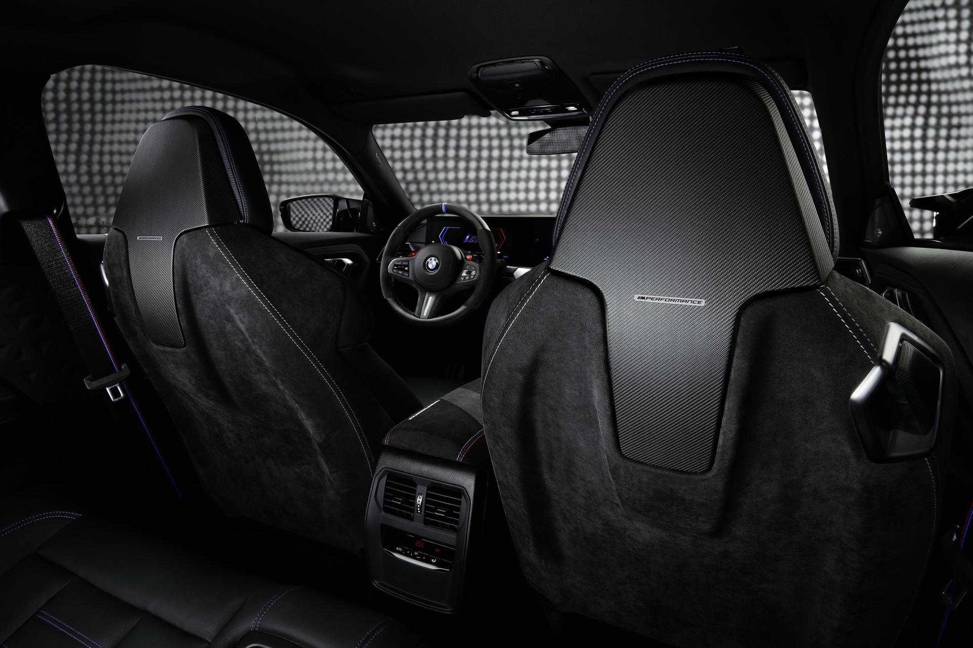 進到車內,消費者能加選特殊飾板以及特殊材質,有碳纖維和Alcantara包覆兩種,包括膝部飾板、中央扶手、方向盤、座椅後蓋、中控台與門飾板等,帶來更熱血的車飾氛圍,除此之外,也可以看到比起標準版更多的M性能標誌,這對於M2來說有大大加分效果。