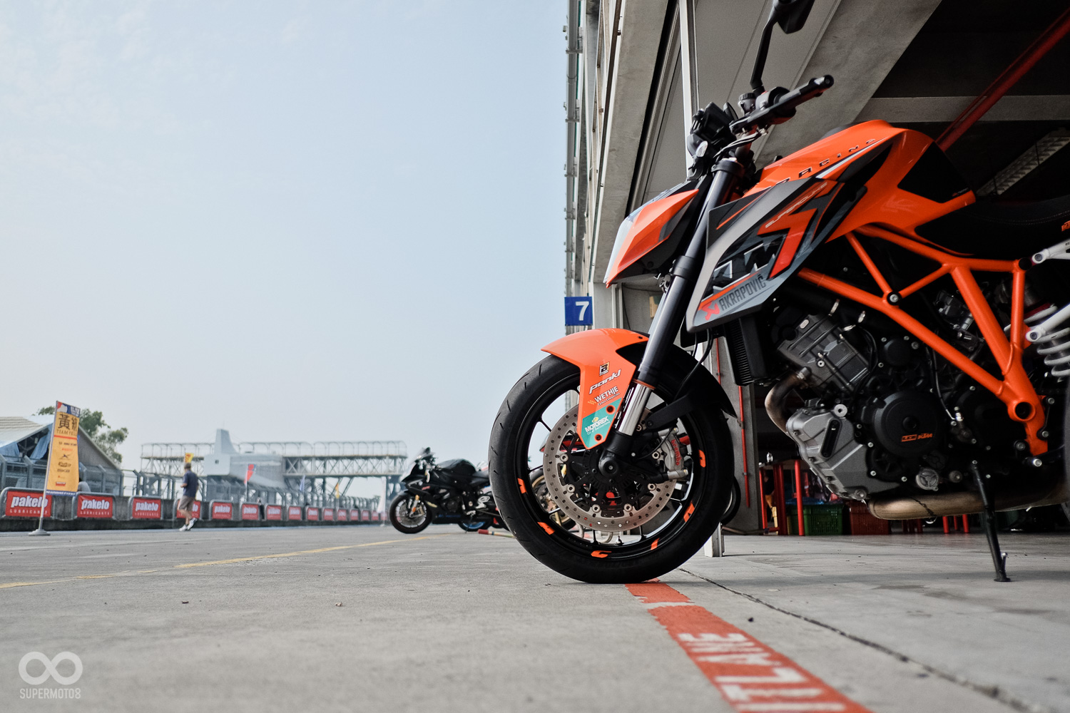 在與1290 DUKE於賽道相處超過60圈後,我已漸漸習慣它的古怪脾氣,甚至開始喜歡這樣的騎乘節奏 ; 少了跑車拉轉的酥麻與高亢噪音,低轉大扭力的特性其實帶來莫名的從容輕快感,就像騎乘大單缸滑胎車在北宜山道上的自在 ; 當回到大直道,轉速指針拉過9000後那強烈又止不住的浮頭動作,緊咬DUCATI 1199與YAMAHA R1衝過看台,似乎在提醒我別忘了它野獸之王的身分。