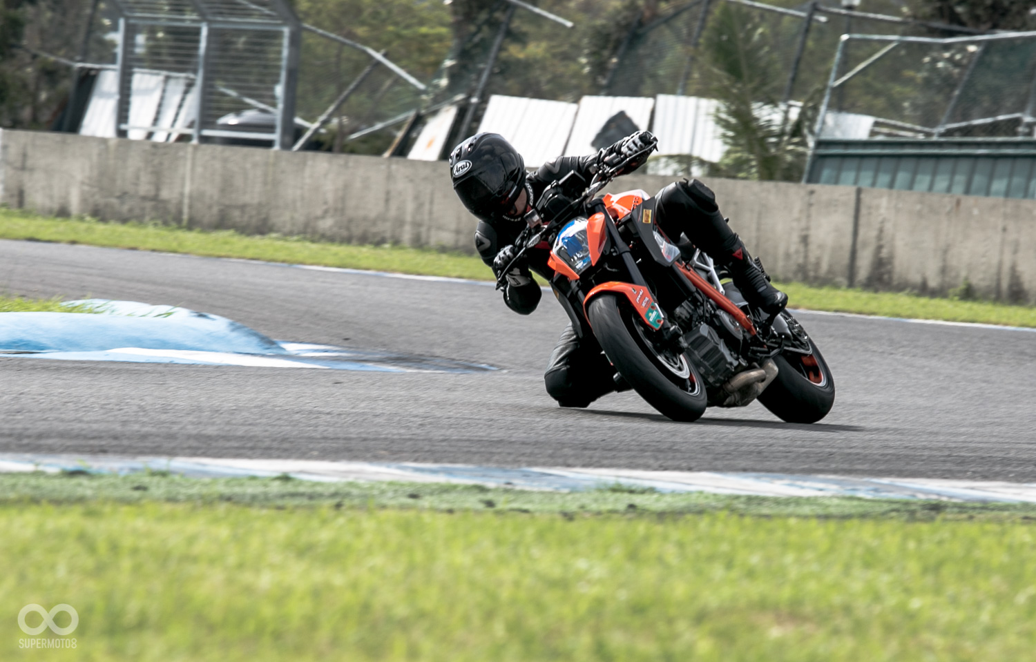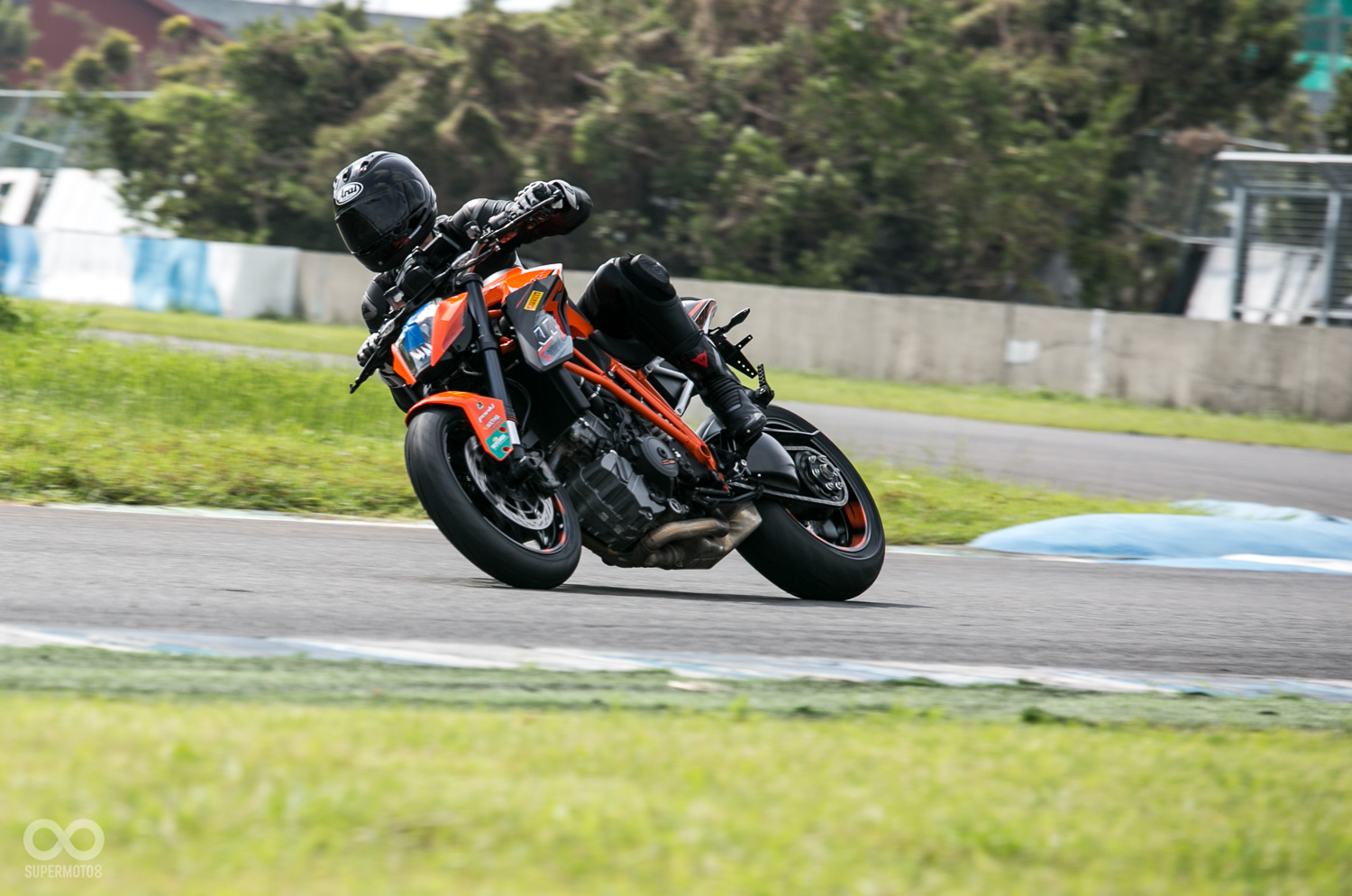 我們都清楚1290 DUKE擁有180ps狂暴動力,以及噁心的14.68KG最大扭力,但來到賽道上扭開油門,每每還是讓人瞬間進入心驚膽跳的狀態中 : 也因為它那2500轉即釋放10KG扭力的出力特性,讓筆者在(T5、T7)這種小彎僅能以高檔位滑行通過,只要稍帶一點油門後輪立刻側滑,如行駛在泥地一般,難以駕馭。