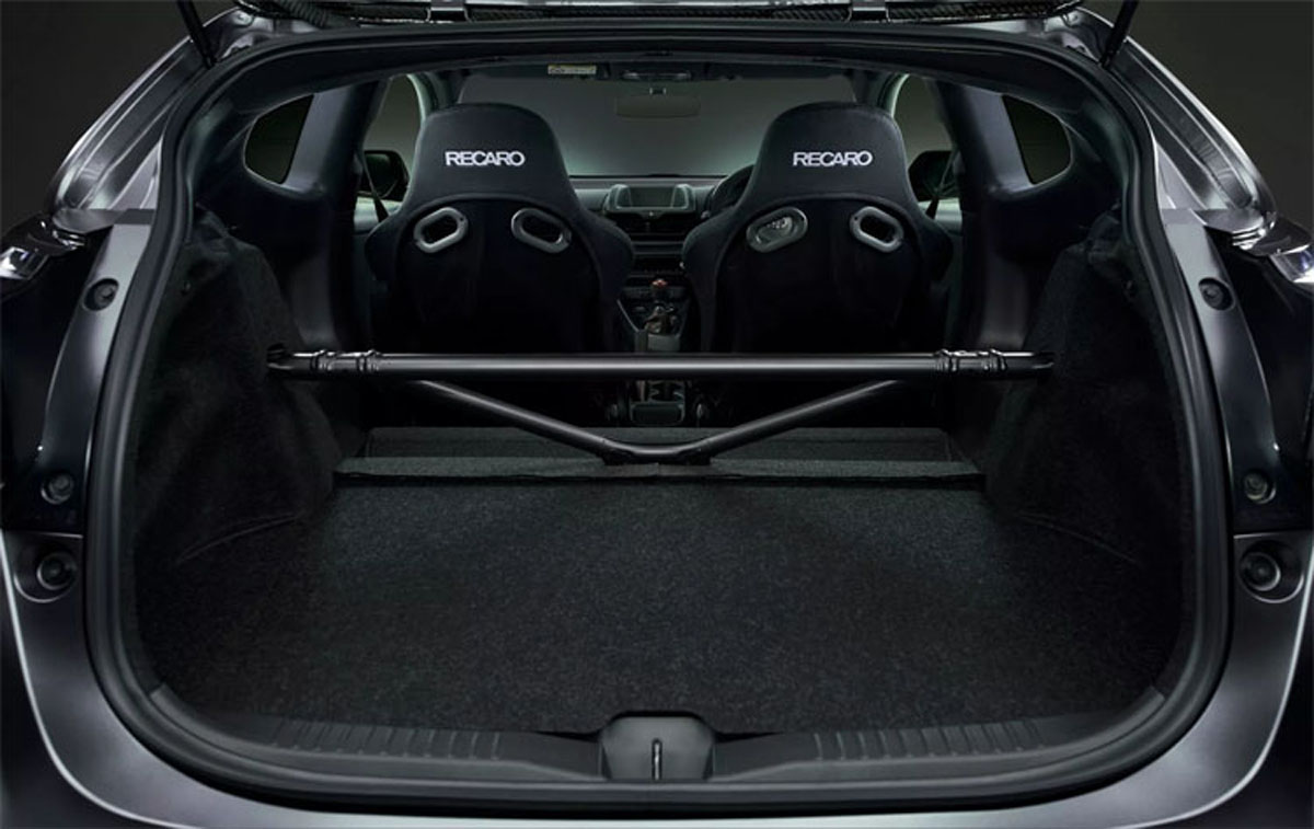 GRMN Yaris版本進行全面升級,例如將後排座椅拆除、安裝碳纖維引擎蓋,與標準版相比,全車點焊數量增加525個,以提升車身剛性。賽道版本車型採用18吋BBS鍛造鋁圈、配備更大的制動系統、Bilstein可調軟硬避震器、加寬側裙、新的前下巴和碳纖維尾翼,車身重量減輕約20公斤。