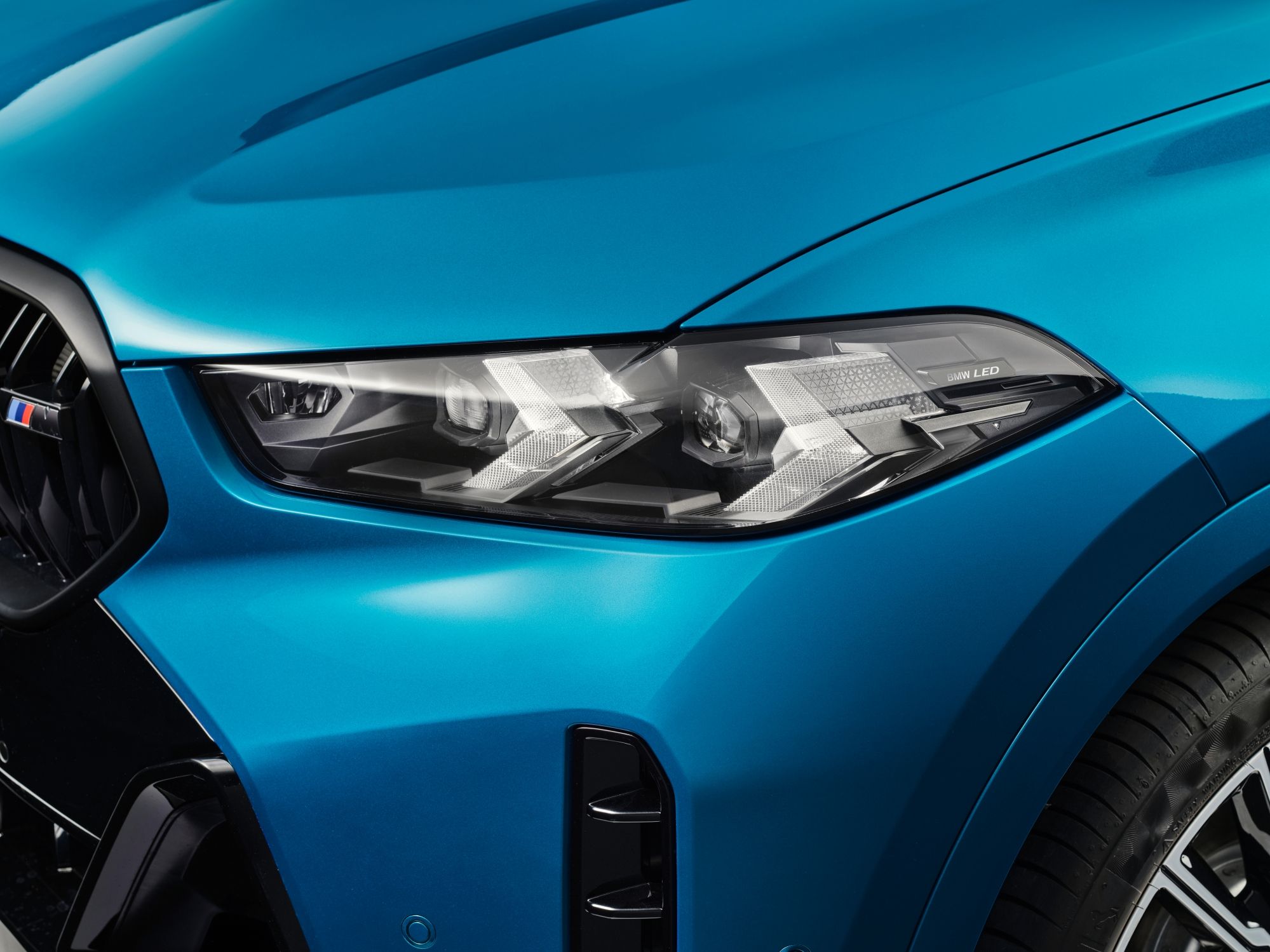 X6在外觀上的更動就沒有X6來的這麼明顯,前臉部分最鮮明的依舊是頭燈組的部分,日行燈一樣換上了箭型的配置,這個日行燈也可以作為方向燈使用,不論是X5或是X6都採用矩陣式LED大燈,並且擁有自動遮蔽功能,而X6在尾燈部分則是維持與現行車款一樣的設計,其他則是在保險桿有一些線條的不同,畢竟X6的造型已經相當戰鬥化,小改款之後更是全面標配M Sport套件,專屬的側裙將會上身,而後方新的排氣尾飾管更是顯得迷人。