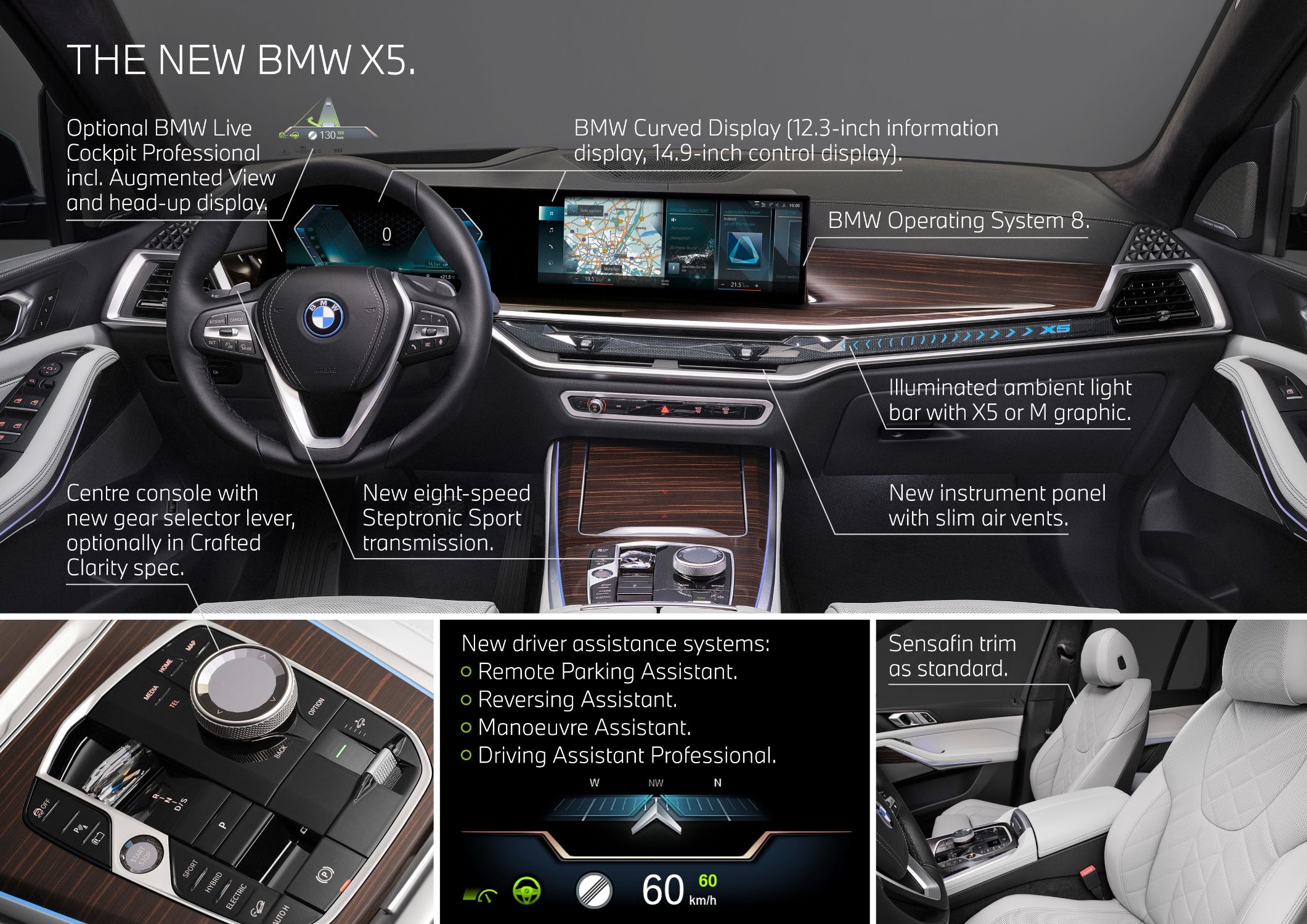 最強大的M60i依舊搭載的是4.4L V8引擎,擁有530hp的最大馬力以及76.5kg-m的峰值扭力,兩輛車的百公里加速可以在4.3秒內完成。不過更令人注意的是X5專屬的xDrive50e的插電式油電複合動力系統,由改進過的直列六缸引擎驅動,搭配上全新的馬達創造出490hp最大馬力以及71.4kg-m峰值扭力,不論在馬達、變速箱、引擎的動力都有所提升,因此X5 xDrive50e百公里加速只需要4.8秒,與M60i相差不多,而在純電續航里程部分最多來到110km(WLTP規範),這是因為電池容量大了25%,來到25.7kWh的原因,而且充電效率也提升至7.4kW,相信會對不少人有強大的吸引力。