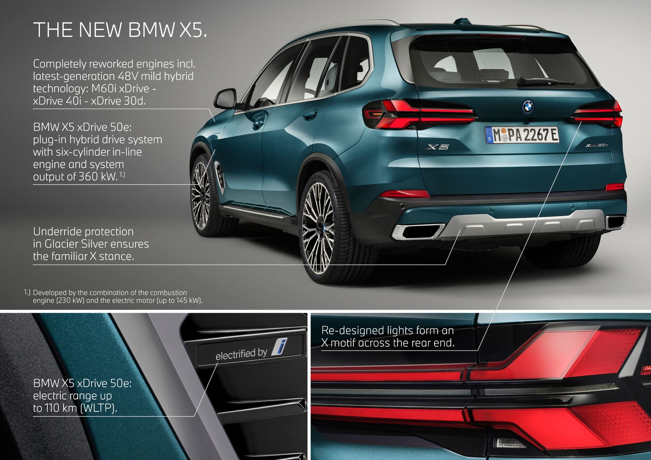 而在X5的車尾部分則是換上了全新的尾燈組,採用上下對稱的設計手法,讓尾燈看起來相當具有厚實感,雖然整體的保桿設計維持著與現行車款大致相同的設計,但透過尾燈組的不同依舊有著極高的辨識度,讓人馬上就可以知道這是輛全新的X5,此外在小改款過後的X5將會全面標配上xLine套件,讓車輛看起來更有越野氛圍,而且還可以選配發光的水箱護罩,如果你想要看起來更有運動感受,X5也有著M Sport套件的選擇,另外還有更頂級的M Sport package Pro首次作為X5的外觀選配項目。