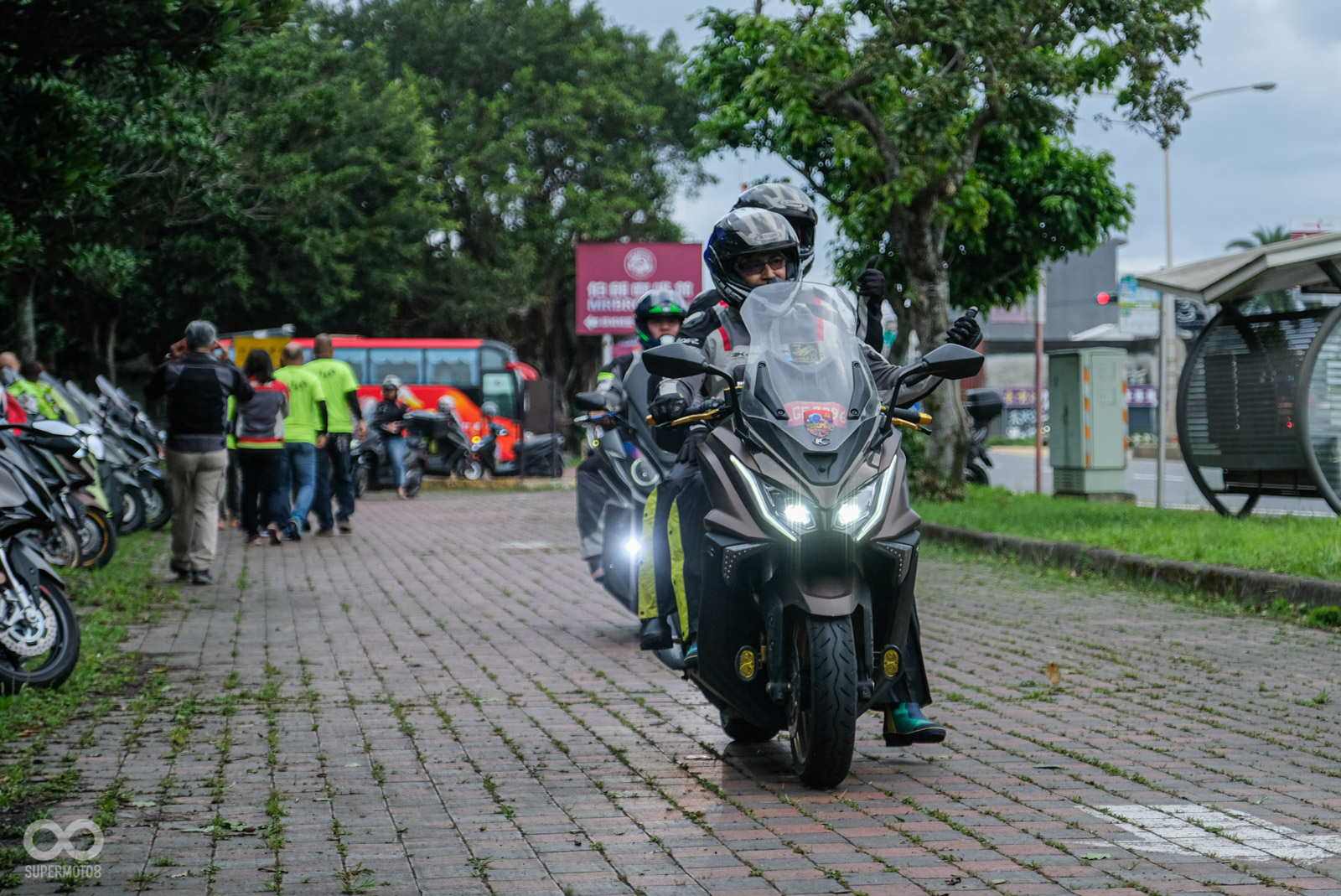 值得一提的是車款大宗以AK550為主,超過100台的AK550車主報名參與,可以看出運動跑旅展現出的高吸引力,另外最適合台灣複雜路面的CV3也有多位車友到場;其餘包含Xciting車系、DownTown車系,甚至相當罕見的旗艦車款Myroad 700i也出現在活動會場。