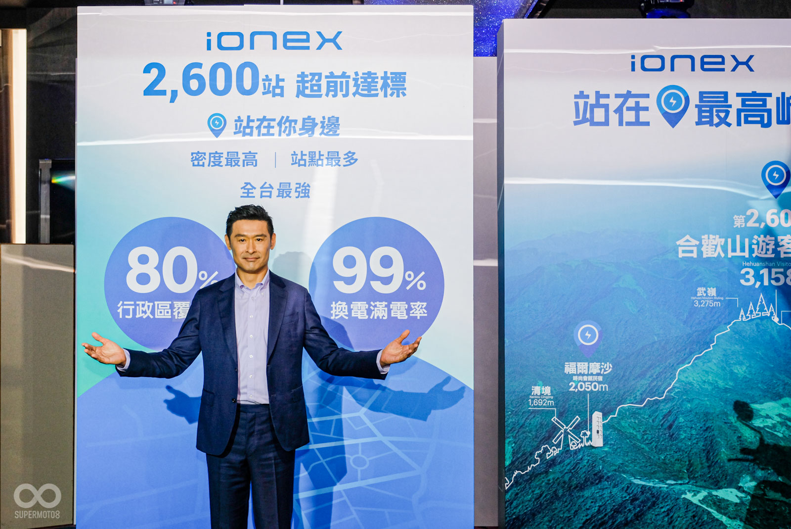 最後這指標性的2600站,Ionex挑選對騎士具有指標性意義的合歡山(武嶺)附近設置「合歡山遊客中心站」海拔3158m,成為全台最高海拔換電站,搭配原先台14甲線的春大地民宿站、福爾摩沙時尚會館站,讓車友攻頂公路最高點路程更輕鬆!