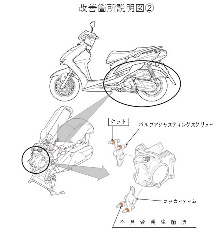 另一招修項目也同樣位於缸頭,在汽門搖臂上頭的汽門間隙調整機構的螺帽扭力不足,鬆動時會導致汽門間隙異常,出現加速不順、耗油、引擎運轉異音等問題;招修時會直接更換螺帽,並且按標準扭力鎖負。