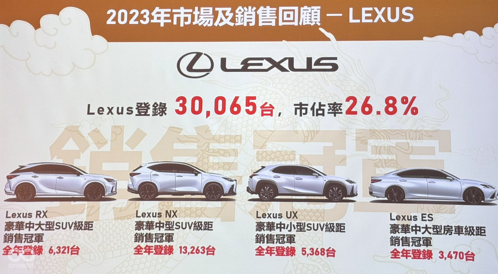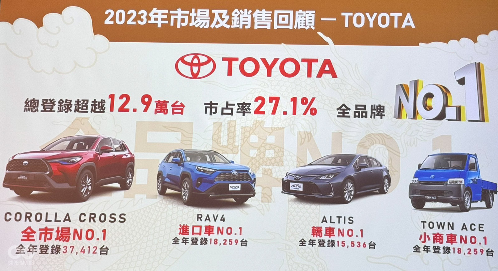 首先,2023年的銷售業績令人矚目,總市場以47.7萬輛的驚人銷量,實現了11%的年增長率,再次確認了其在台灣車市的火熱程度。TOYOTA旗下的Corolla Cross、RAV4、Altis以及Town Ace在各自的車型類別中都取得了銷售冠軍的佳績。同樣地,Lexus品牌也以其RX、NX、UX和ES車型在高端市場也成功拿下冠軍。而和泰三品牌也取得高達34.9%的市佔率。