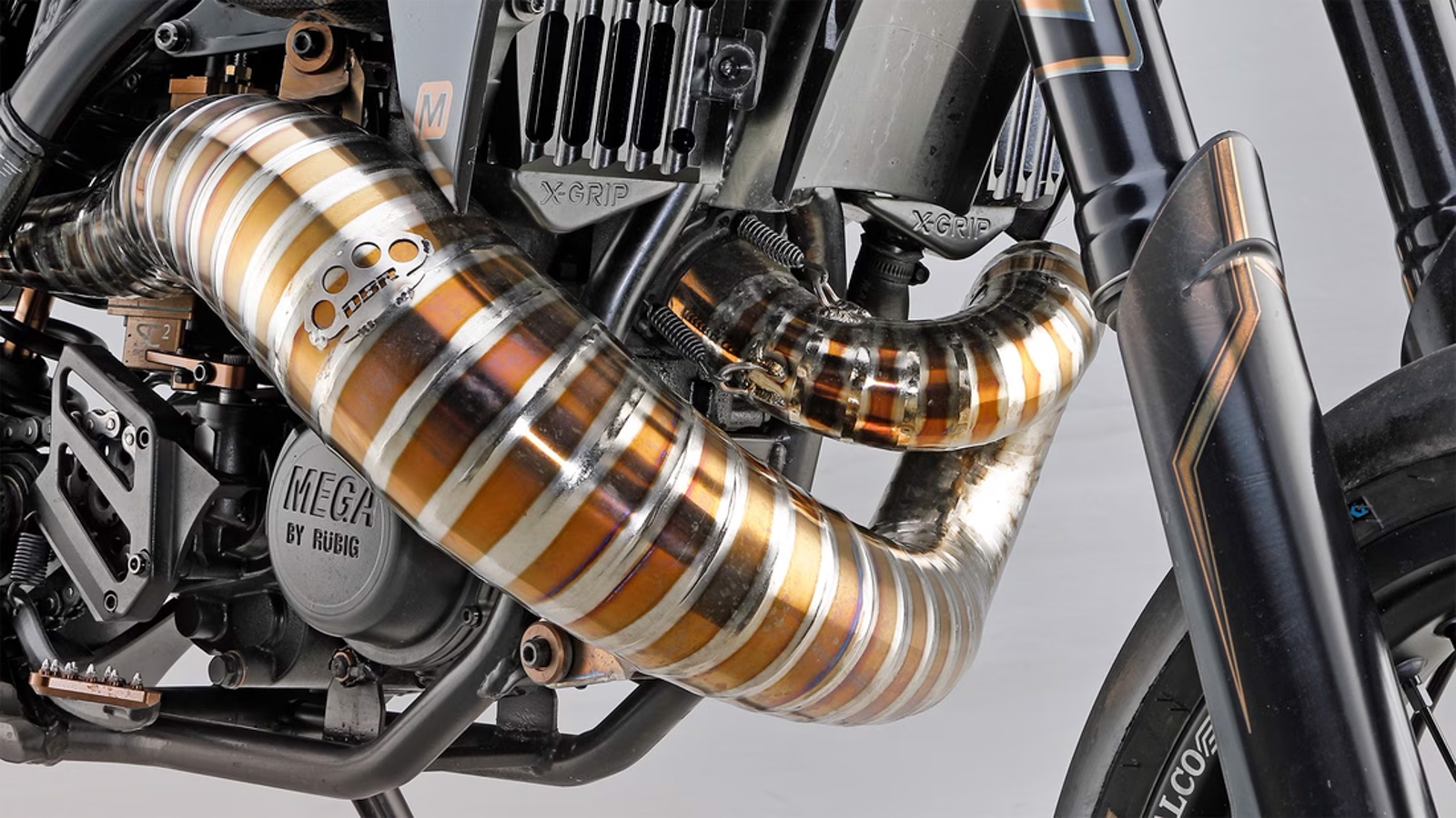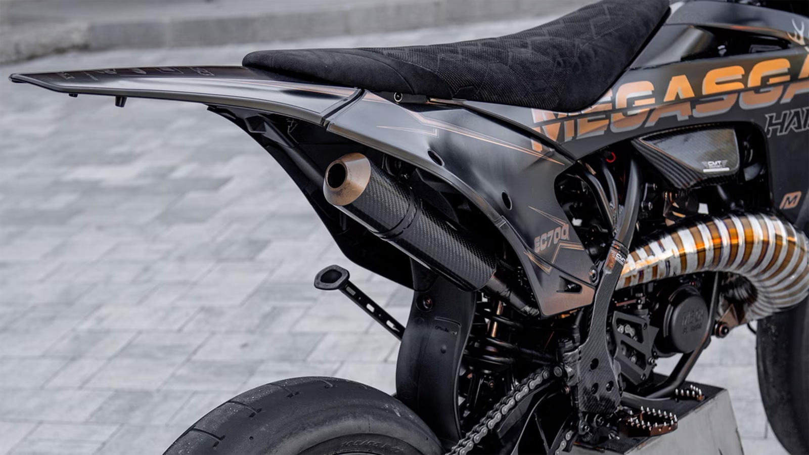 Megasgas EC 700 的靈感來自 Cupra 汽車,採用了黑色和銅色的塗裝,散發出低調奢華的氣息。動力方面,這輛猛獸搭載了來自奧地利 Rübig 的 Mega 二行程單缸引擎,排氣量達到 699cc,可輸出超過 84 匹馬力。