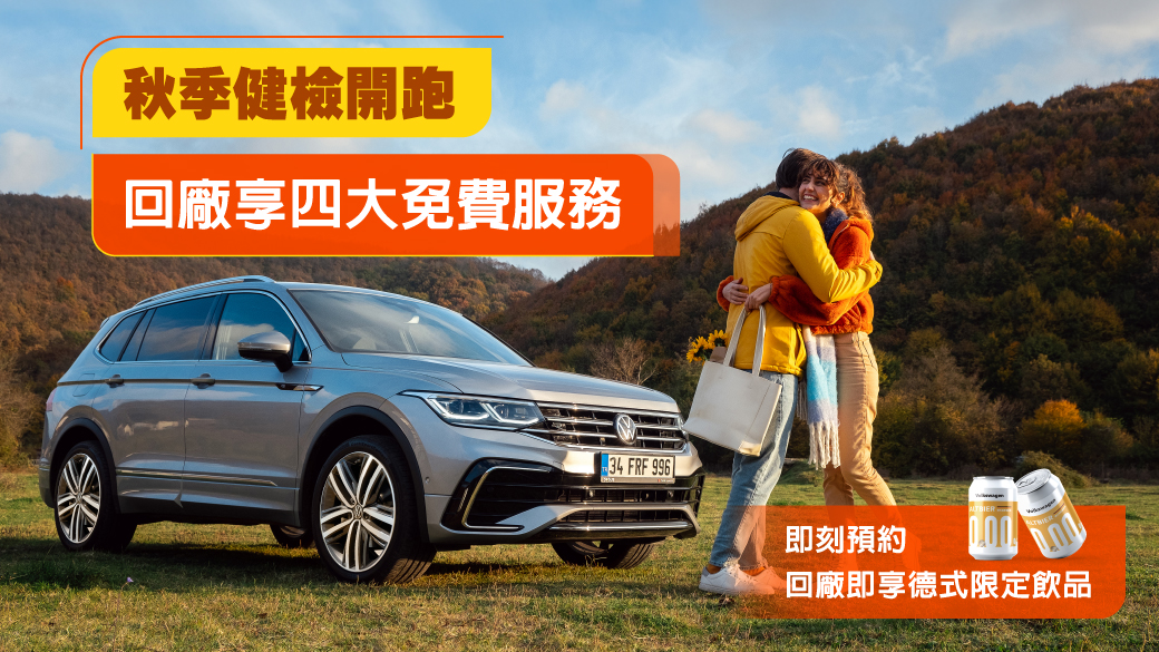 秋意漸濃,台灣福斯汽車邀請車主在出門追楓之前,確保愛車達到最佳狀態,自9月1日起至10月31日止,秋季健檢開跑,4大免費服務包括臭氧除菌/除臭服務、車輛安全檢查、車輛外觀清潔與胎紋深度檢查,福斯人禮遇計畫會員獨享原廠保養耗材、機油及原廠電瓶75折起、馬牌輪胎買3送1,而購買指定原廠精品及原廠配件再享優惠55折起。