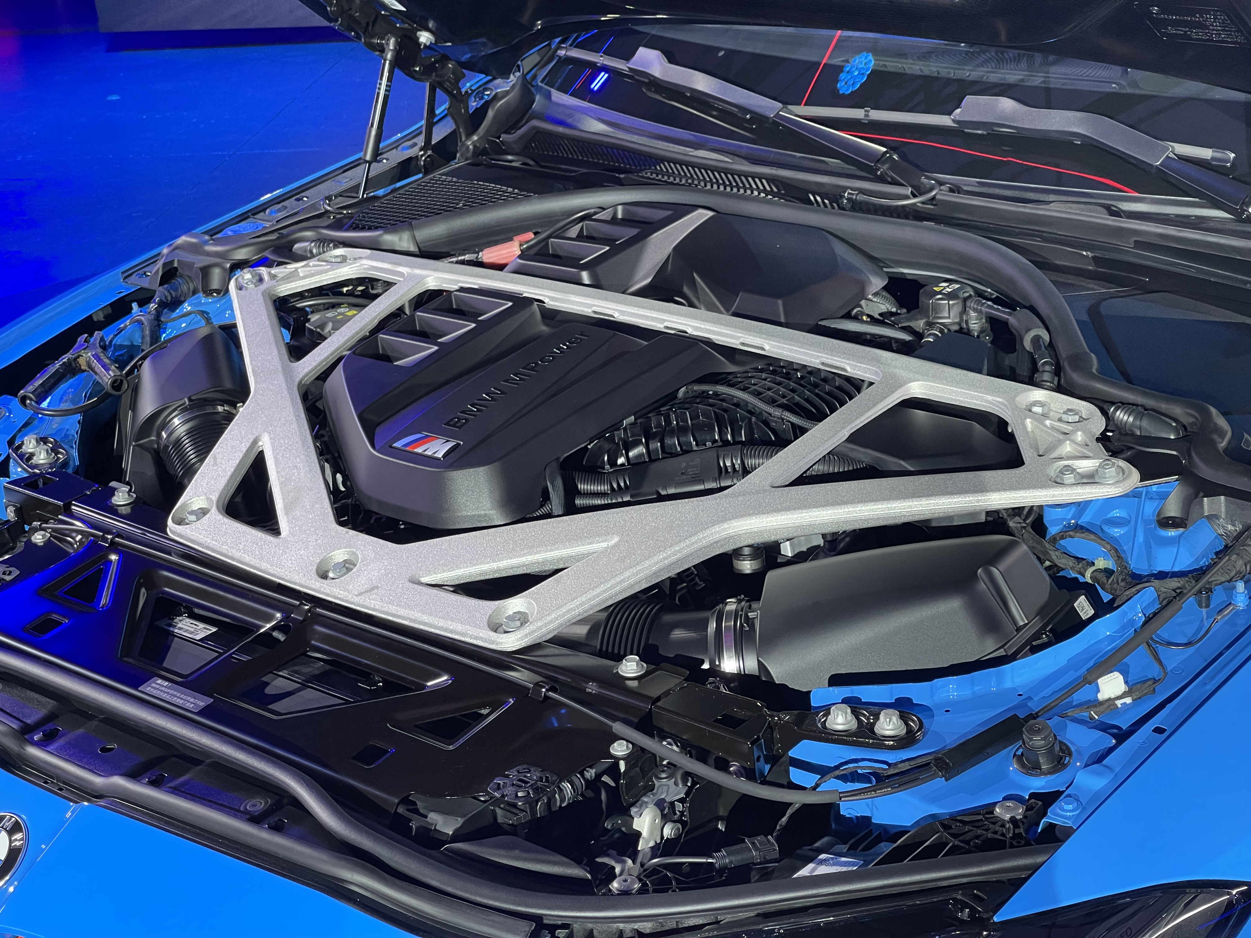 BMW M工程師為這具M TwinPower Turbo S58雙渦輪增壓引擎進行了一系列的強化升級,將新世代的3D列印工法應用於汽缸蓋的製造上,製作出傳統工法無法實現的複雜幾何形狀,使得汽缸蓋的整體重量大幅降低、水道的分佈更加理想,有效助於溫度控管。利用曲軸輕量化以及鍛造活塞及連桿的技術,強化剛性同時減輕重量,在引擎的高轉速下,能減少機械磨耗阻力同時優化引擎動力輸出。為通過嚴苛的賽道測試,在加大面積的進氣口背後,四個冷卻迴路系統中共擁有七個散熱器,使得引擎在激烈高速的操控下仍能保有最佳性能狀態。