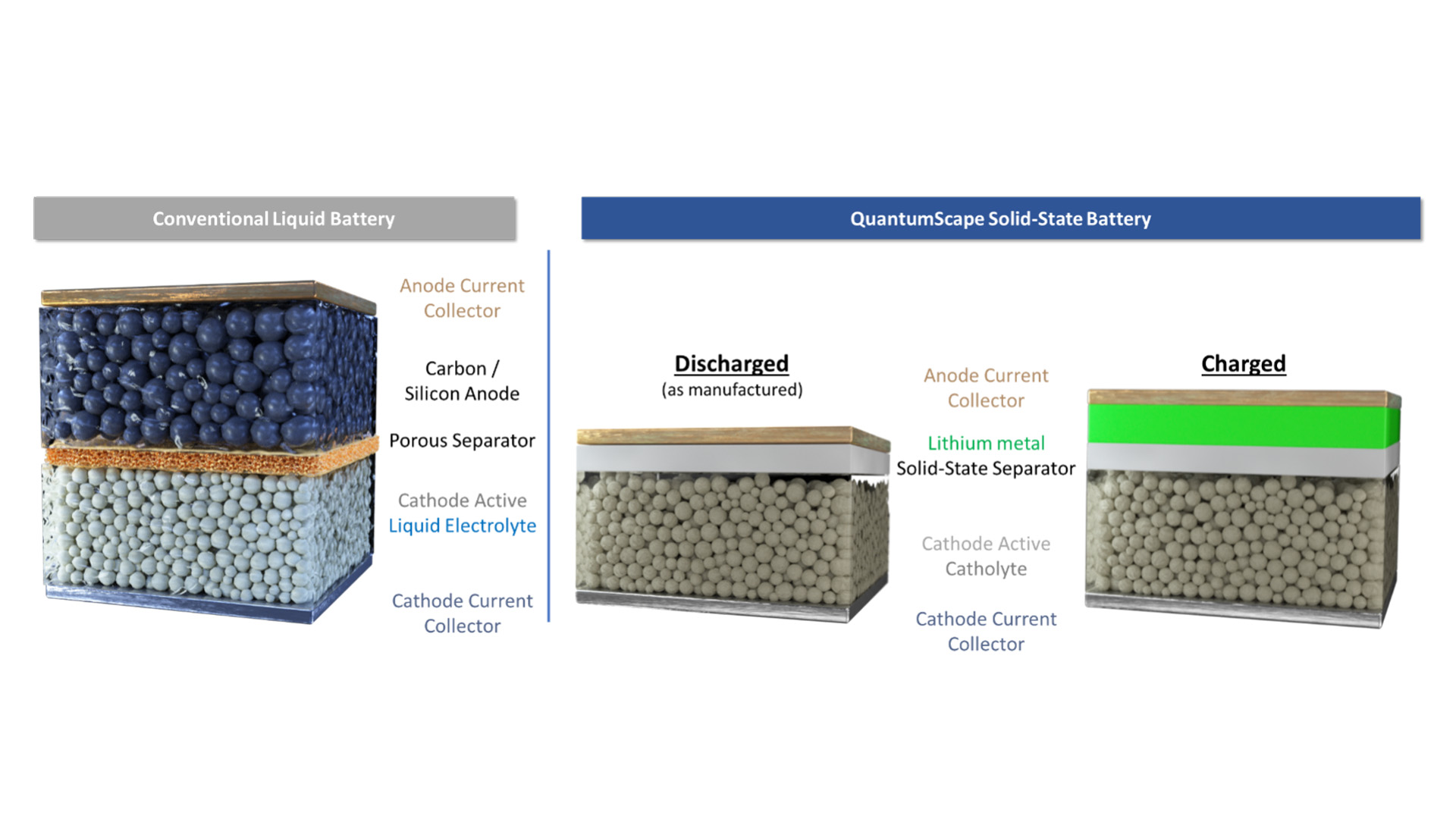同樣來自加州的 QuantumScape 則開發了一種無負極電池,使用陶瓷隔板替代傳統的液態電解質。這種創新使得鋰金屬可以在充放電時從正極流向集流體,整體體積相對穩定,為未來的電池設計提供了更多靈活性。