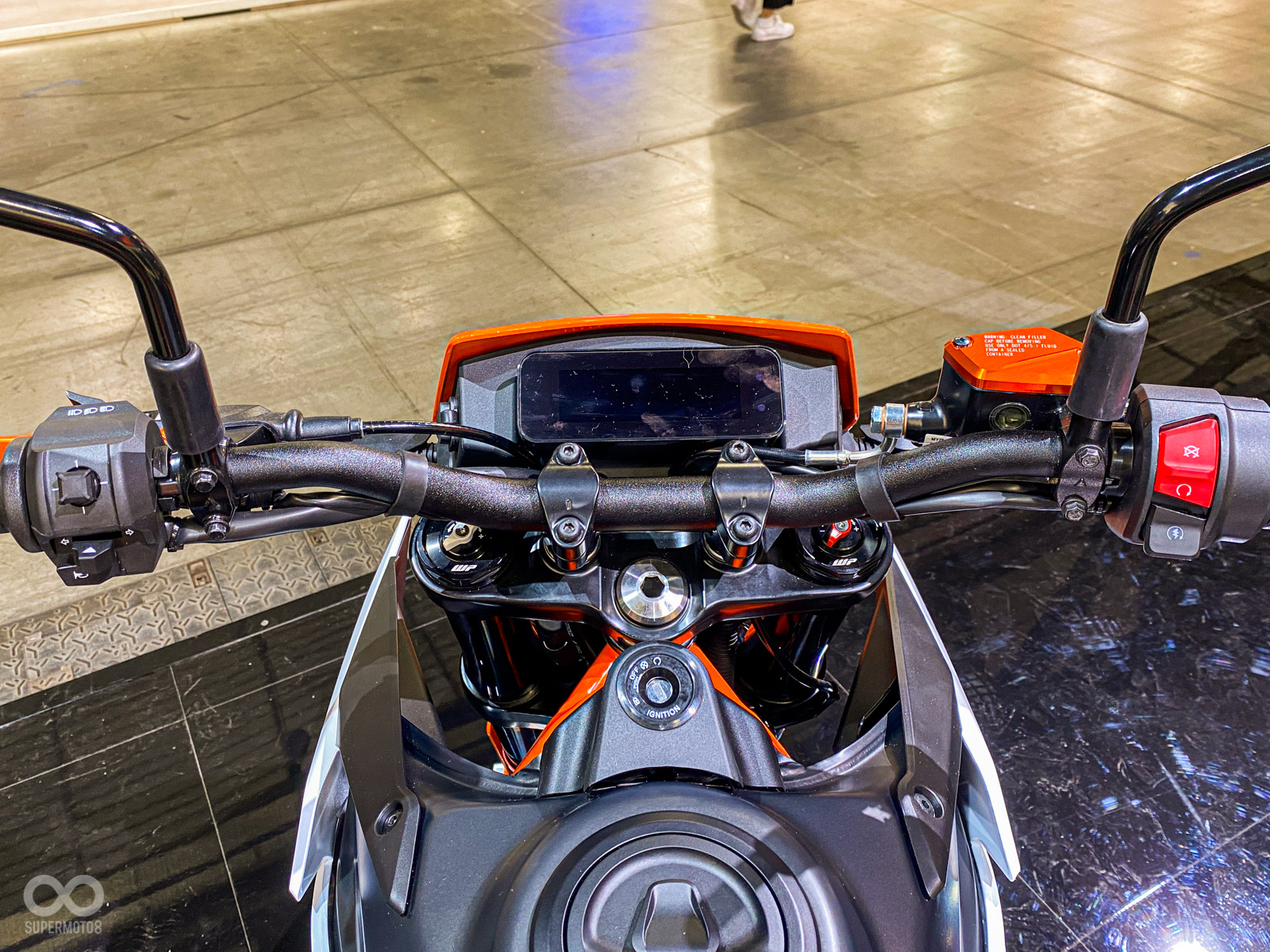 懸吊方面搭配 WP APEX 倒立式前叉與單槍後避震,煞車也能看到採用和390 Duke相似的Brembo ByBre 四活塞輻射卡鉗;另外電控系統應該也會具備彎道ABS、彈射起步、騎乘模式(街道、雨天、賽道)、MTC循跡系統、Supermoto ABS、快排選配等,讓騎士能在街頭隨心所欲,征服每一道彎角。