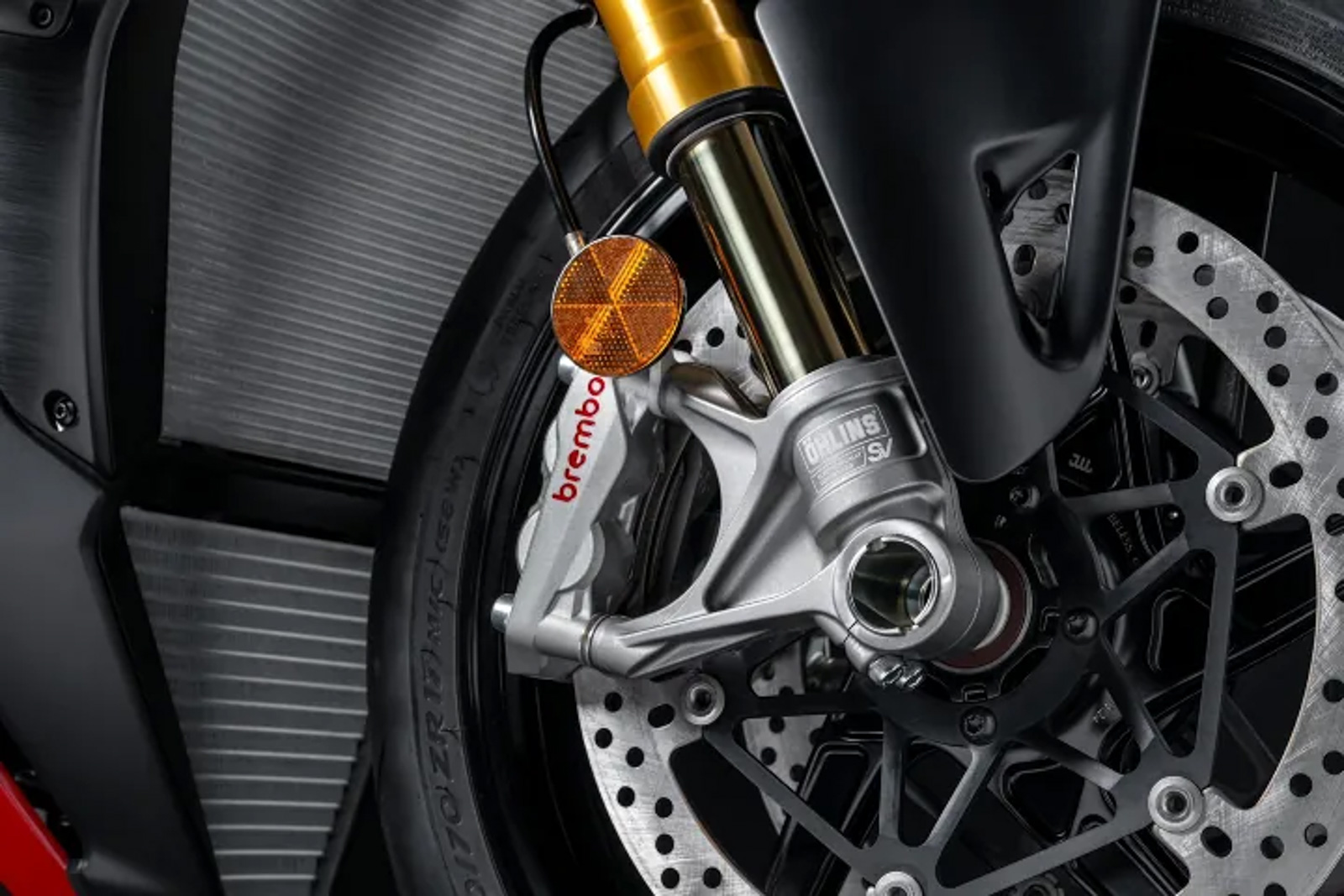 煞車系統方面,兩款車型皆搭載 Brembo Monoblock Hypure 4 活塞卡鉗,前輪配備 330mm 煞車碟,後輪則為 245mm 雙活塞卡鉗,加上Panigale同款的 Race eCBS 煞車系統,無論你是想飆速還是緊急減速,都能隨心所欲。