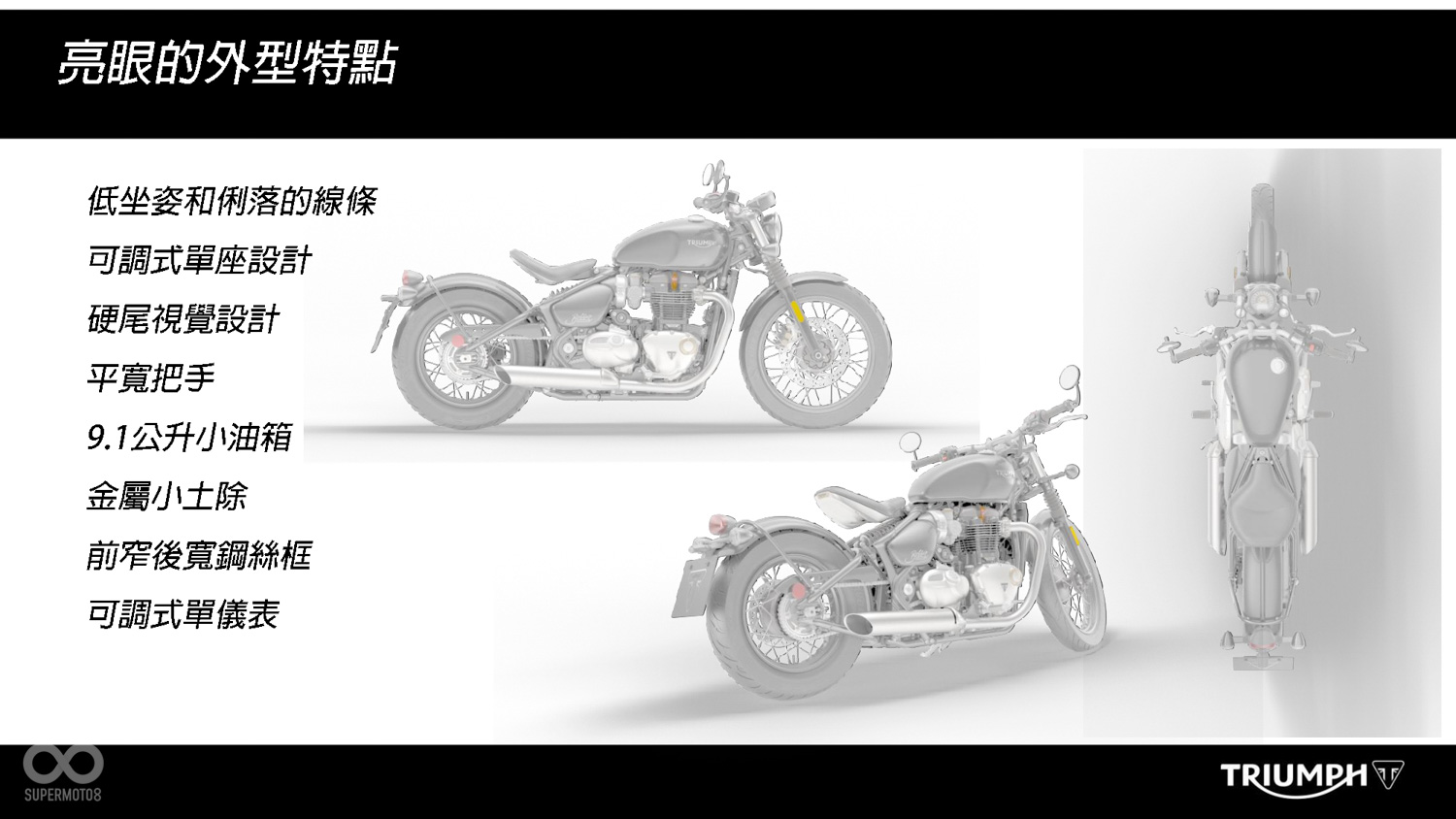 2016年末的米蘭車展中,英國機車廠Triumph在其當家車系Bonneville下新開出一脈全新分枝Bobber,以狂野熱血的美式風格作為依歸,以精緻的英式手感打詮釋出粗獷的美式Hardtial嬉皮風格,發表後立刻引起了國內外車迷的高度矚目,而凱旋在台總代理安東也搶在第一時間將此車引進台灣,並於今日(5/9)在林口的展示中心舉辦了開箱儀式。