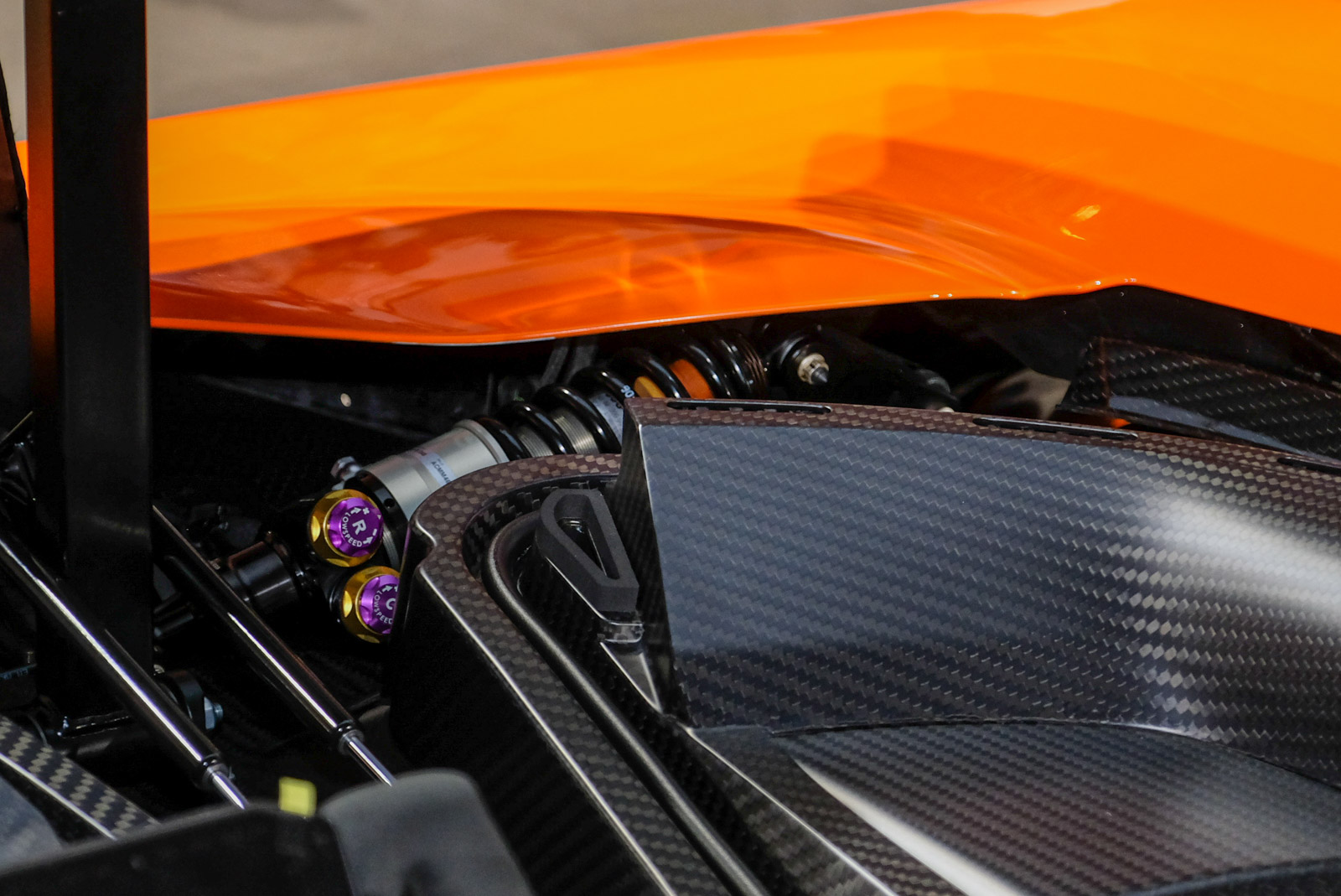 KTM X-BOW GT-XR 全車結構緊扣極致輕量訴求,採用與知名賽車製造商 Dallara 合作開發的單體碳纖維車體以及大量碳纖維部件打造而成,最輕車重僅 1,130 公斤。動力核心搭載 2.5 升五缸渦輪增壓引擎,重新調教後可輸出 500PS 最大馬力與 581Nm 峰值扭力,配置七速雙離合變速箱達成 0-100km/h 僅 3.4秒、極速 280km/h 的強悍性能表現,操控導向的後驅設定搭配機械式限滑差速器,精準調節彎中動力分配展現出色動態循跡表現。懸吊幾何部分,X-BOW GT-XR 前後軸皆採雙 A 臂獨立式懸吊設計,將賽車及高性能跑車最適的前軸推桿式減震系統直接安裝於單體碳纖維車體,優化整體空力佈局,此外更配置三段可調式前防傾桿及外傾角快速調整機構,根據不同駕駛情境精準平衡賽道及公路設定,搭配 Brembo 制動系統及義大利 OZ Racing 輕量鍛造輪圈進一步減輕簧下重量,帶來競技感十足的操控體驗,完美詮釋Extreme Racer (XR) 之名。
