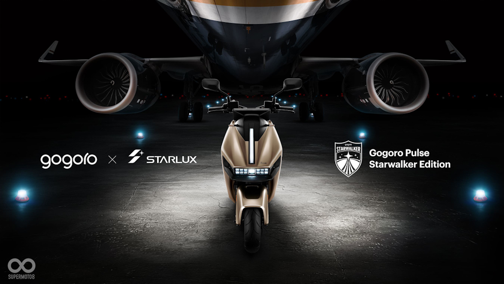 Gogoro x STARLUX Starwalker Edition 聯名套組含 Gogoro Pulse Starwalker Edition 星宇航空特仕版車輛、同車色聯名安全帽乙頂、聯名飛行夾克乙件、Gogoro x STARLUX 聯名皮革卡套乙個(只送不賣),即日起首批 200 組限量珍藏價 NT$ 136,980,完整珍藏創新與工藝的理念精髓。