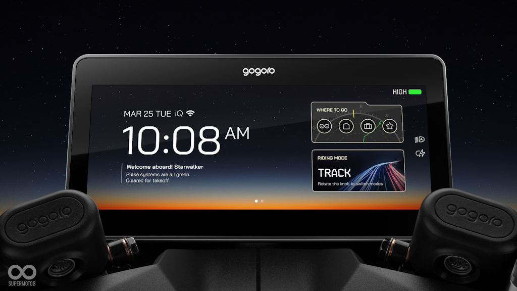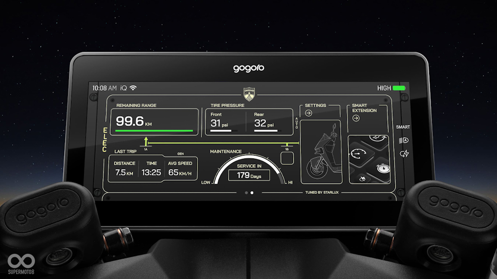 iQ Touch HD 數位儀表2 提供完整即時的車輛狀態數據,大幅提升騎乘便利、安全與樂趣。10.25 吋的全景高解析觸控螢幕整合實時騎乘數據、地圖導航與即時路況、GoStation 電池交換站地圖,多種模式配合裝置於車輛龍頭的「騎乘模式旋鈕」,騎士可依據自身偏好在「續航 / 泥地 / 都會 / 長途 / 賽道 / 自訂」等六類場景與「彈射起步模式」3 中快速切換。全景高解析觸控螢幕搭載高通新一代 Qualcomm Snapdragon QWM2290 晶片4,展現豐富的數位功能與出色的人機互動介面,並可透過熱點實現即時連網。