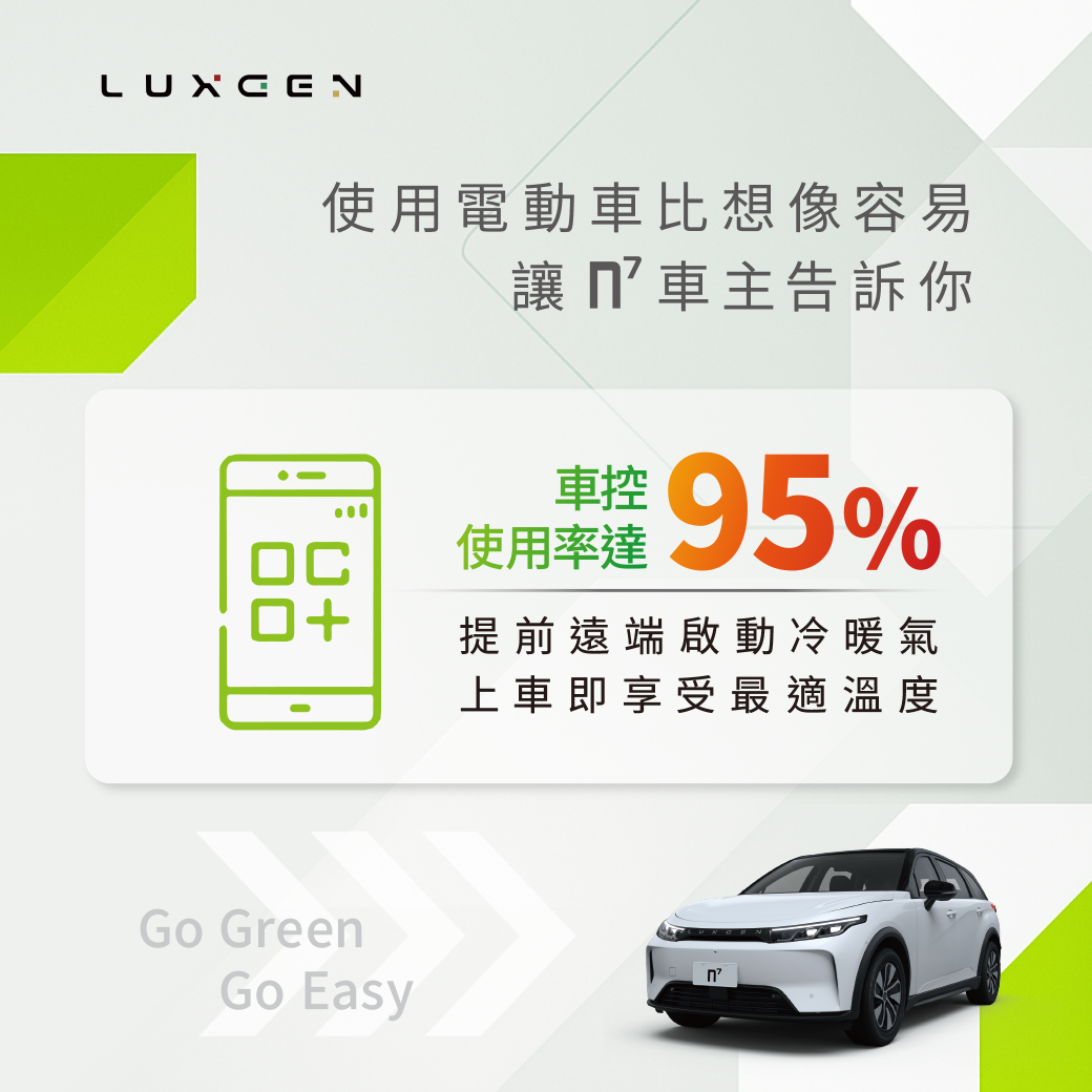 LUXGEN n⁷ 啟動交車已滿周年,總行駛里程已突破1億公里,節能減碳約37座大安森林公園一年碳吸存量、種植約14,000棵樹、減少使用200萬個寶特瓶、250萬包影印紙,在實現純電生活的過程,LUXGEN邀請不論是n⁷車主或是對永續生活有興趣的你,一起用屬於你的參與方式,共創綠色未來: