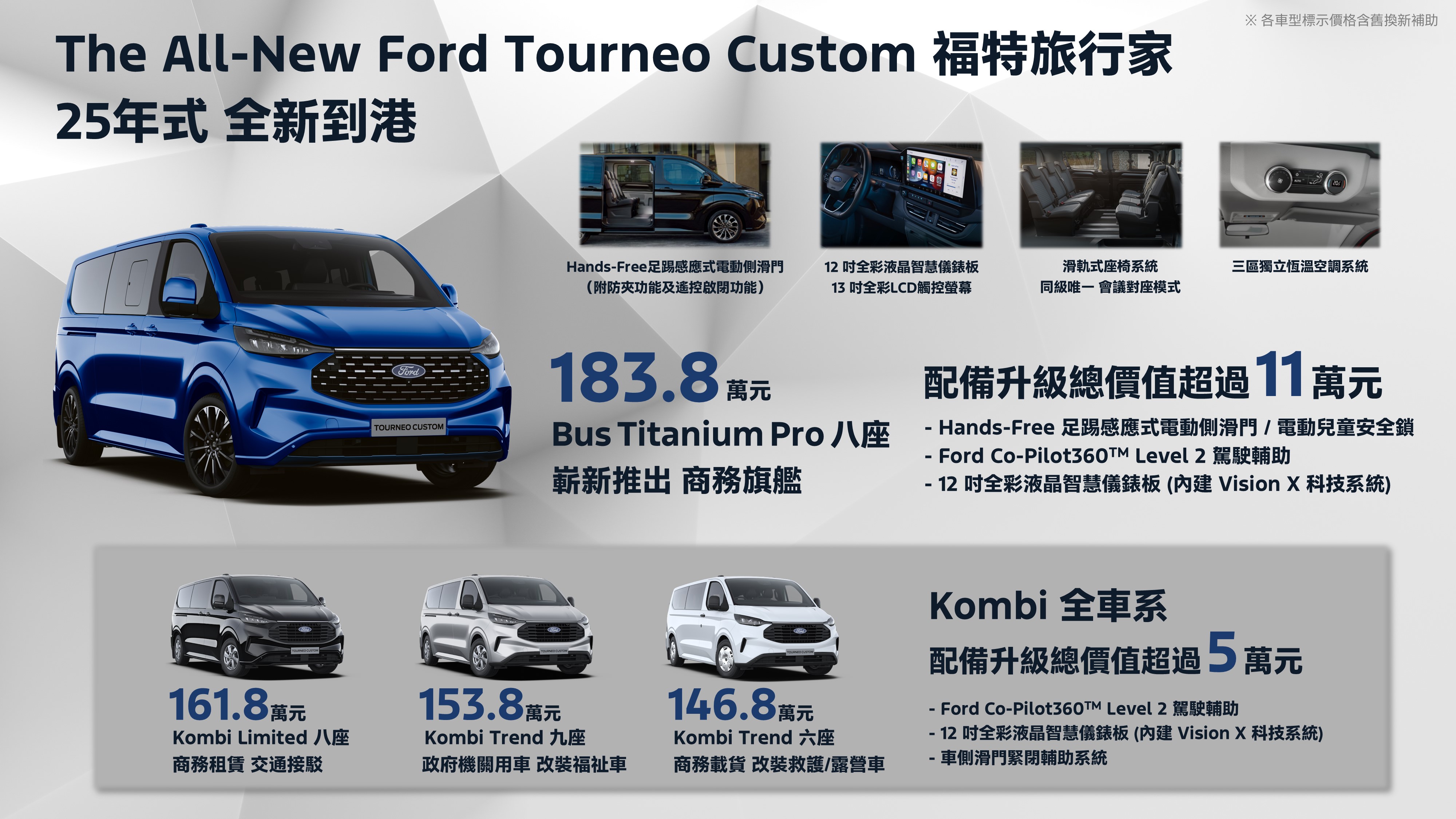 The All-New Ford Tourneo Custom福特旅行家全新25年式建議售價
