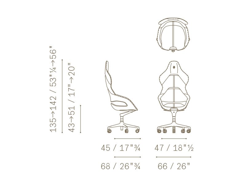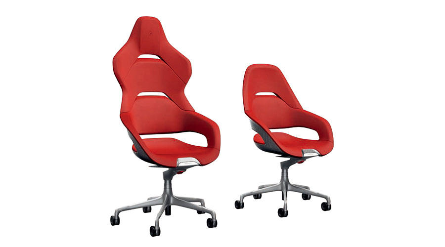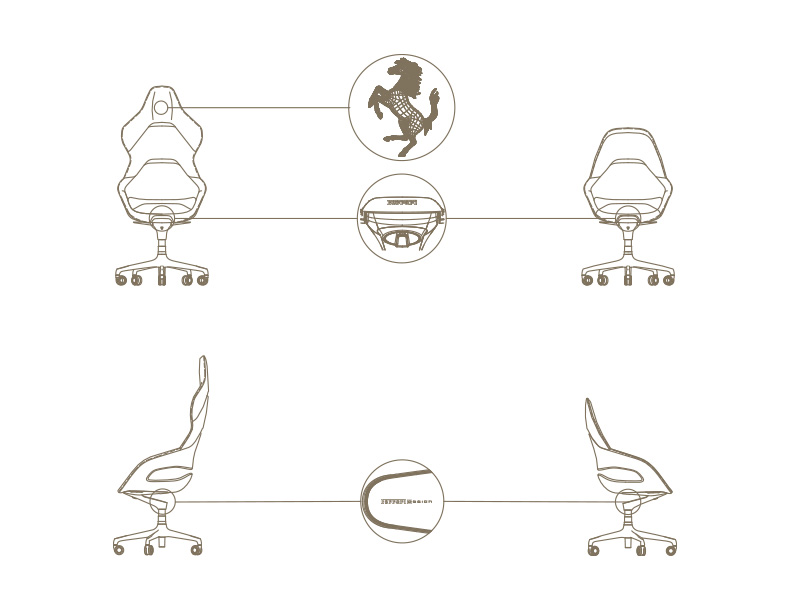 在椅背的部分可以選擇碳纖維或是鋁合金兩種材質,座椅下方懸空的漂浮設計,更顯了它的高級感受。兩款椅子皆由Flavio Manzoni親自帶領Ferrari設計中心完成構思,委由Poltrona Frau生產,借重其百年手工傢俱技藝及專業的皮革知識,無論是椅背位置或是座椅高度,皆符合完美人體工學,提供絕佳舒適感。