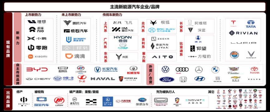 回顧2018年,中國的新能源車產業迎來創業高峰,據估當時有超過500家企業投入新能源車的開發與製造。然而,由於資金不足、技術落後與市場競爭激烈,許多企業未能量產或銷售,迅速被市場淘汰。根據調研機構AlixPartners的報告,到了2024年仍在中國市場銷售新能源車的企業只剩129家。未來六年內,只有其中約15家具備長期生存實力,其餘品牌將因為財務、技術或規模問題逐漸退出市場,這代表近90%的企業將面臨淘汰命運。