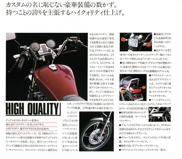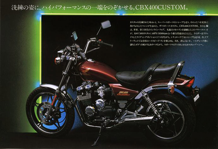 CBX400 Custom 在1983年誕生,表面看起來像是CBX400F改把手、換坐墊的假美式,但其實內在完全另有玄機。它不是CBX400F的變種,而是從人氣也不怎麼樣的 CBX650 縮小而來(這台650在美國叫 Nighthawk 650),所以基本架構更接近巡航車,而不是街車。