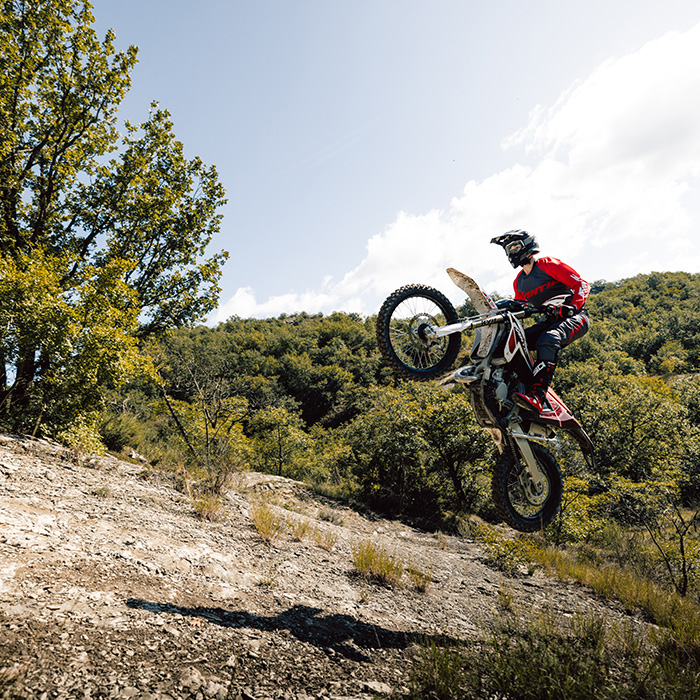 全車系標配全套 KYB 前後懸吊,前叉行程 310mm、後懸吊行程 315mm,可全可調設定,對應不同賽道與地形。煞車系統採用 Brembo 液壓卡鉗與碟盤,提供穩定的制動力。雖然越野車不像公路車那樣配備大量電控,但 Fantic 仍提供可切換的點火曲線、進退檔輔助以及可選配的牽引力控制系統,方便車手依賽道條件調整輸出反應。