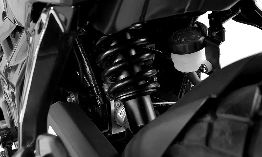 兩車的懸吊與煞車配置一致,前懸吊為伸縮式前叉,後懸吊為中置單槍避震,前碟煞 260mm、後碟煞 222mm,輪圈尺寸為 17 吋鋁圈,配胎規格前 110/70-17、後 130/70-17,制動力與穩定性兼具。配備部分同樣擁有 LED 頭尾燈、LED 方向燈、全 LCD 儀表與 USB 充電插座,實用度與科技感都在線。