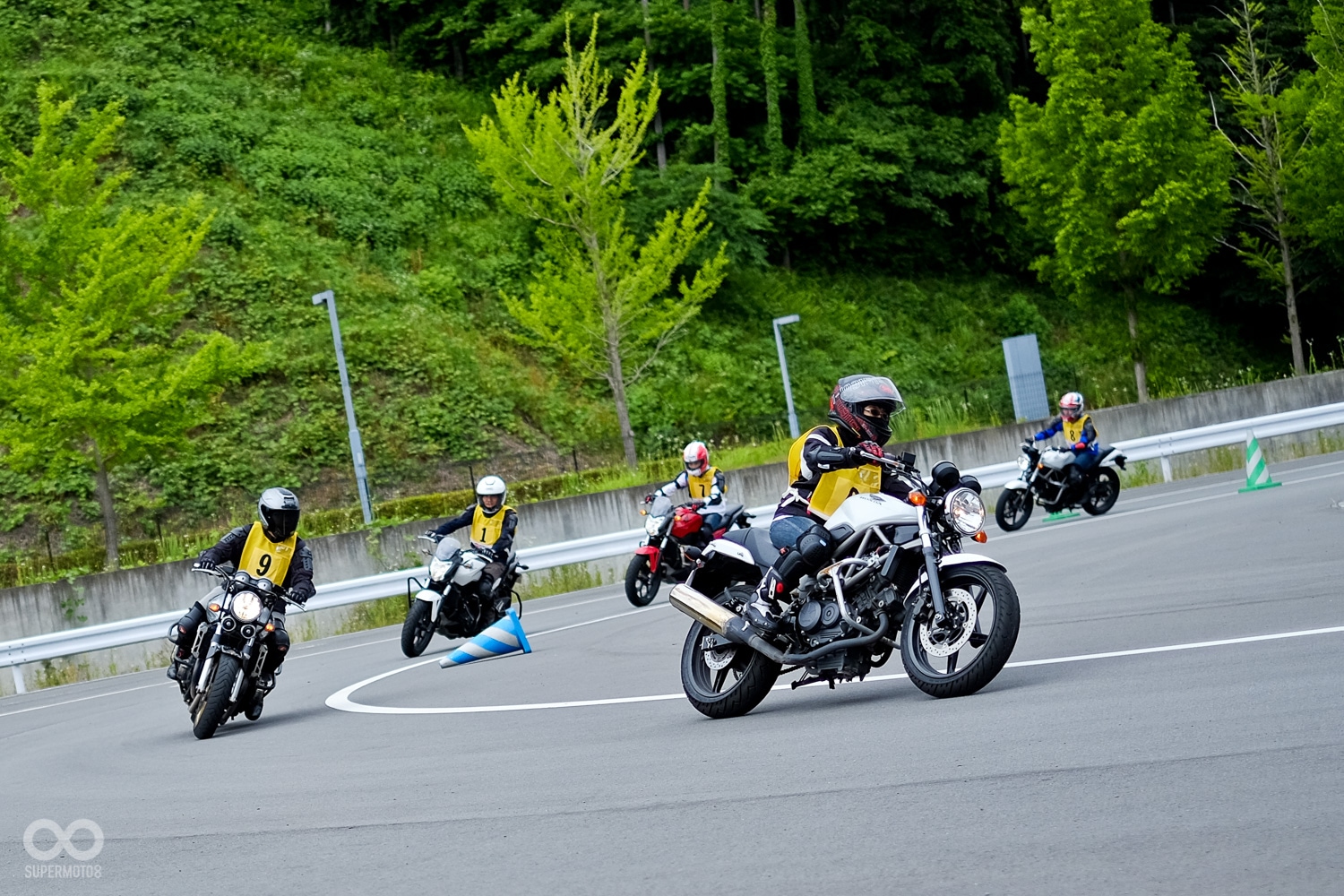 課內的練習項目包含剎車、J-TURN 低速迴轉、Course Slalom (寬窄繞錐)、平衡(一本橋/ Pylon Slalom) 之外,還有眾所期待的茂木賽道走行體驗,能以不低的速度在國際級賽道上騎車,對任何喜愛騎車的人來說都是個非常難得的經歷,有些團員搞不好就是衝著這點來的吧!最後,中心更提供了數種不同車款讓學員試駕,一次讓你騎個夠。
