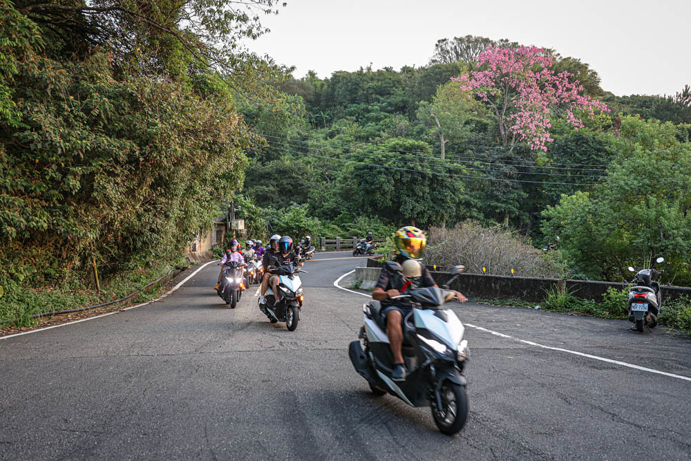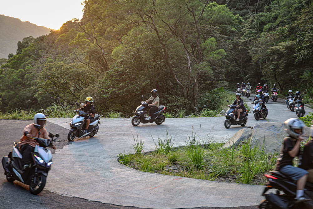 當車隊從淡水出發,沿著山路一路爬升,窗外景色從城市水泥叢林轉變為翠綠山林,接著再穿出山道,迎面而來的是一片湛藍的太平洋。這條「山海征途」的路線設計,完美呼應了這次活動的主題,讓騎士們能在同一趟旅程中,同時感受山路的刺激與海景的愜意。