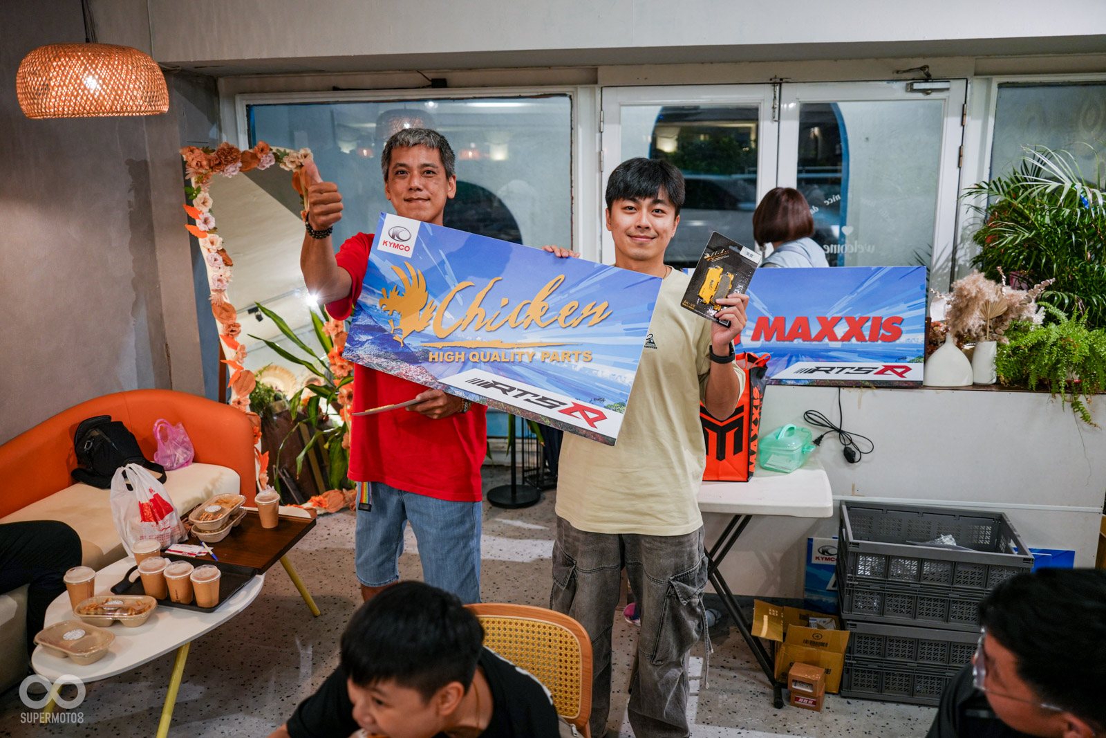 在大家用餐、交流的同時,活動的高潮——抽獎環節也隨之展開。KYMCO這次準備了許多豐富的獎品,從騎士人身部品、車輛精品到實用的生活小物,應有盡有。每當主持人念出得獎者的號碼,現場總會響起一陣歡呼與掌聲。