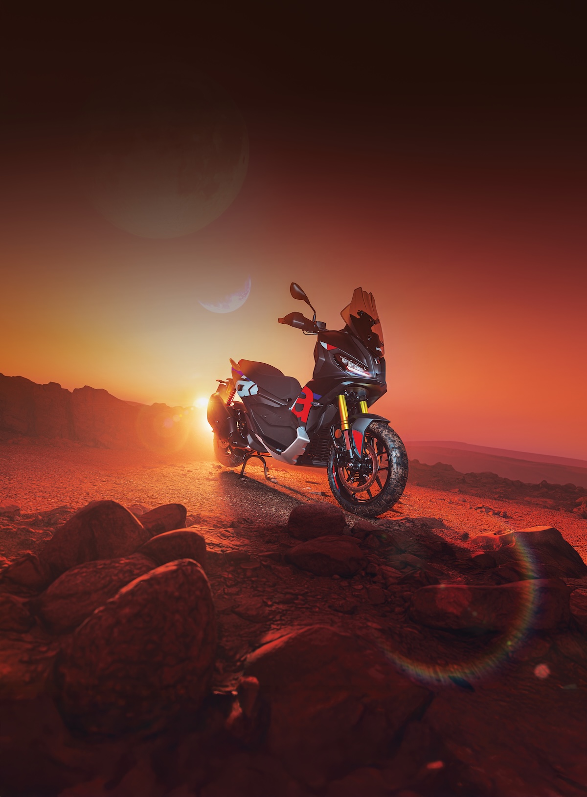 Aprilia 設計中心從自家賽道與越野車汲取靈感,為 SR GT 400 打造出一具兼具力量與動感的車身線條。整體造型俐落緊湊,宛如一件充滿雕塑感的 Enduro 作品。