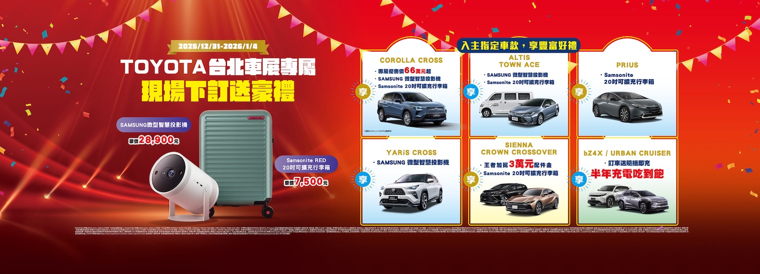 如果你剛好想換車,現場下訂的優惠非常多,送Samsung微型投影機或Samsonite行李箱這種實用家電不說,上網登錄還有機會抽到最新的iPhone 17跟Switch 2 。這次車展辦在台北世貿一館,展期從2025年12月31日跨年當天開始到2026年1月4日,大家跨完年不想在家廢的話,不妨去現場感受一下未來的移動生活吧 。