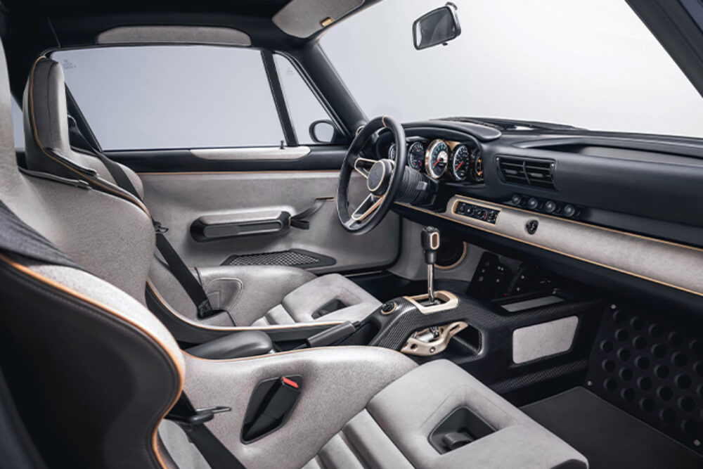 Singer 在 2026 年正式交付了首輛 DLS Turbo「Sorcerer」 客制版,這款車是向 1970 年代 Porsche 934/5 耐力賽車致敬的最新力作,它基於 Type 964 底盤,經過數千小時的手工打造與工程驗證,搭載一具 3.8 升雙渦輪水平對臥六缸引擎,結合水冷缸頭與風冷缸體,極限轉速可達 9,000rpm,輸出超過 700hp 與 553lb-ft 扭力,動力透過六速手排變速箱傳遞,排檔桿採用升高設計並外露連桿,強調機械感。