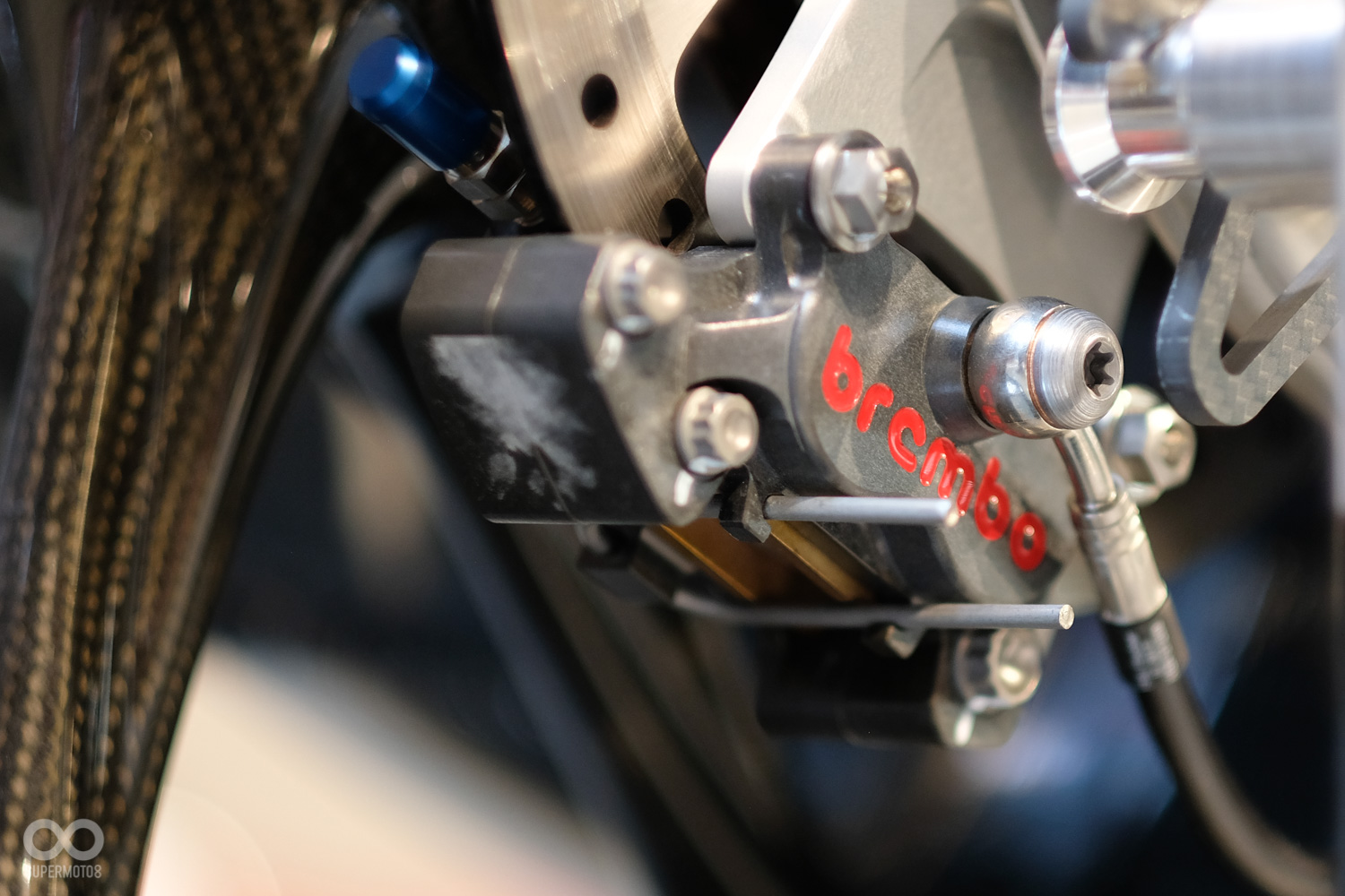 後制動 Brembo 四活塞卡鉗、220mm 碟盤