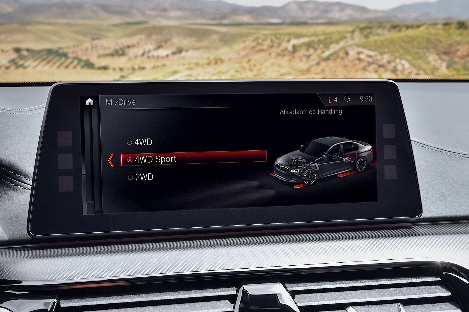 身為第一輛搭載上四驅系統的M5,當然有它特別之處,全新的xDrive系統能夠讓車輛擁有更好的動態表現,也可以完全使用後輪來驅動整輛車,讓F90 M5除了速度之外更增添了一些樂趣。BMW M主動式電子限滑差速器使用電磁原理進行作動,依據所選駕駛模式或車輛動態,來進行各個輪子0~100%的無段鎖定。也因為搭載上xDrive以及更激進的變速箱,讓F90 M5擁有3.4秒的百公里加速成績,比起上一代的M5還要進步了1秒之多,成為BMW旗下百公里加速最快的車款,也比起同級的對手RS6 Performance以及E63 S還要來的更快,而且這一代的M5在0-200km/h的加速引只要11.1秒就可以達成,若是選配M Driver's Package套件解除限速之後,極速可提升至驚人的305km/h。