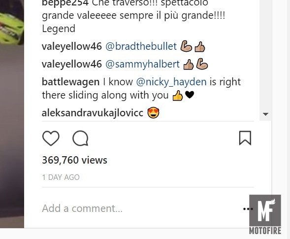 倒是Rossi 在貼文時就直接標記這兩位車手的帳號,似乎是在跟他們求教,這下你就曉得,越厲害的人才是越懂得謙虛的。