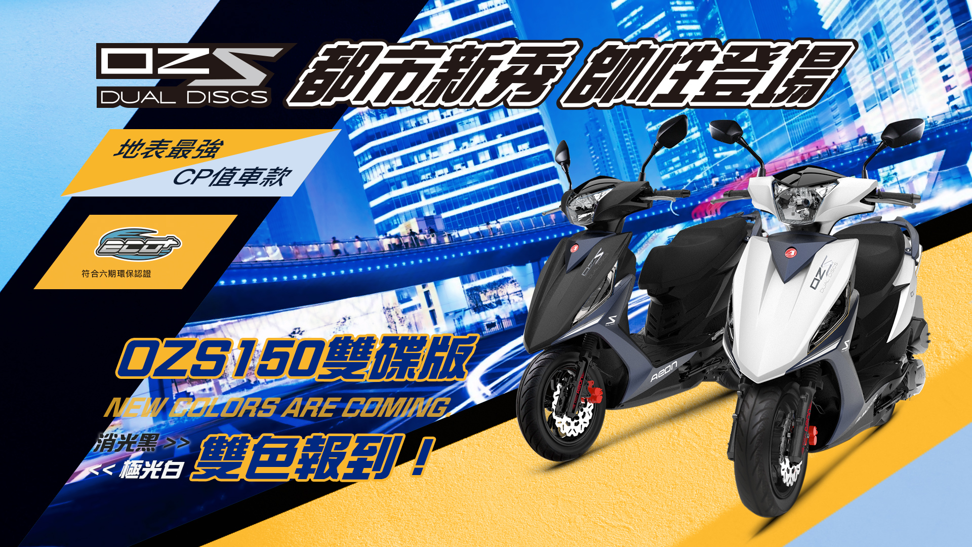 Aeon宏佳騰自成立以來,品質已連續7年獲得台灣精品獎、金質獎及2017金點設計獎殊榮;這次將在現場展出150C.C.同級車中最佳CP值著稱的OZS150雙碟版-「消光黑」及「極光白」新色車款,這部暢銷車款同步搭載十爪鋁合金輪圈與雙碟系統、4V滾針搖臂噴射引擎配備規格,兼具絕佳操控性能及亮眼造型。為了歡慶宏佳騰20周年,現場並有超值購車優惠、吶喊拿好康、FB留言免費抽ASUS ZenWatch 3…活動好禮等您帶回家,活動詳情請上宏佳騰機車官網、FB粉絲團查詢。
