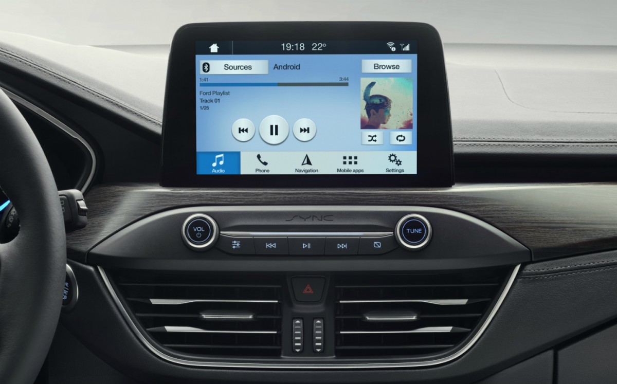 中央鞍座上全面換上E-Shift旋扭裝置,透過旋轉的方式切換檔位,排檔桿的取消也創造了大空間的視覺感受,同時換上EBD電子手煞車(Auto Hold),讓整個鞍座更加簡單潔淨,更符合他們對於這一代Focus的內裝設計,加上無限充電板、擁有過濾PM2.5功能的恆溫系統,還有FordPass Connect讓車主可以用手上的手機執行車輛功能,結合了智慧科技與車輛功能,讓新一代的Focus更吸引人。儀表並沒有使用數位儀表,但擁有多功能的HUD抬頭顯示器可以顯示所有重要資訊。