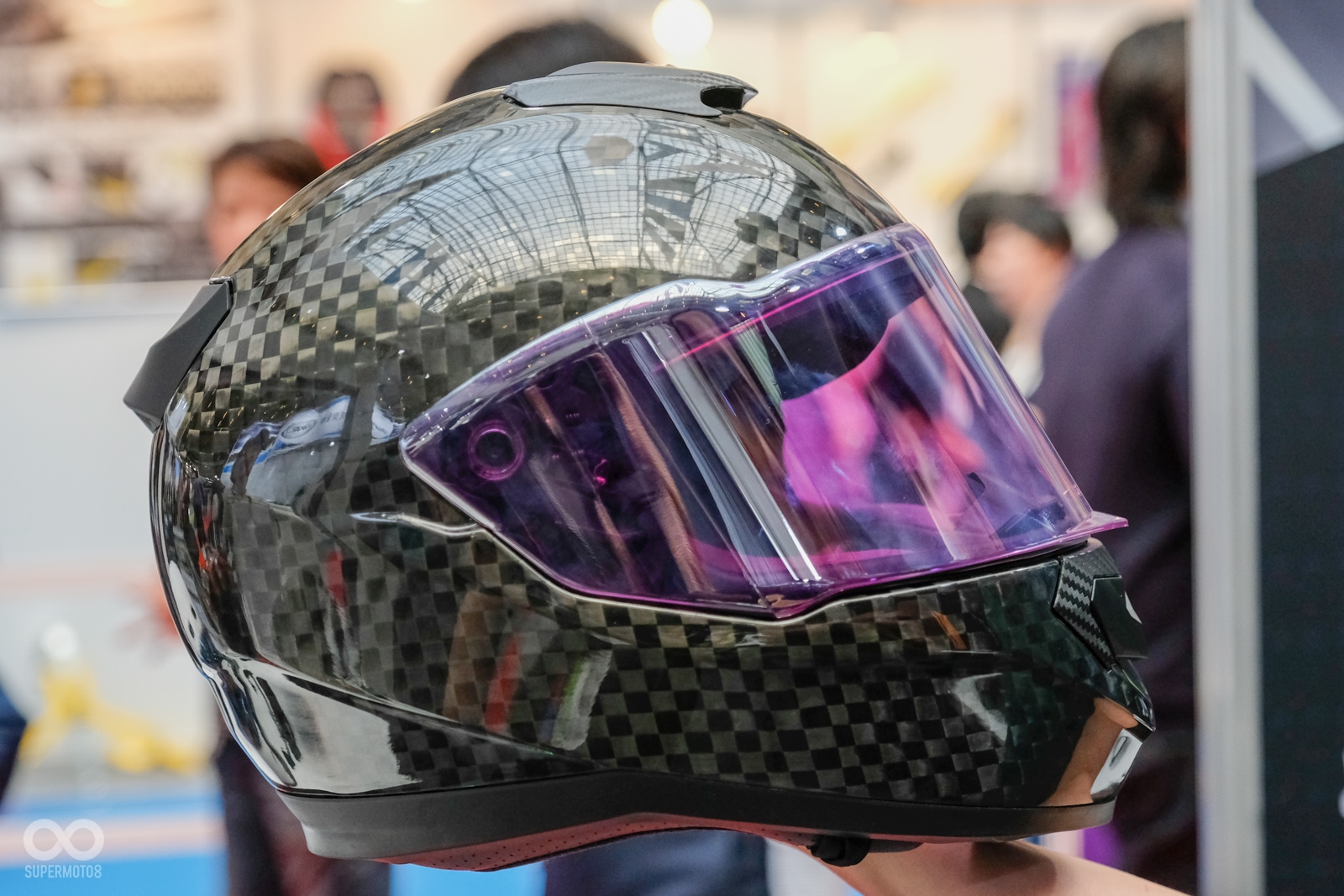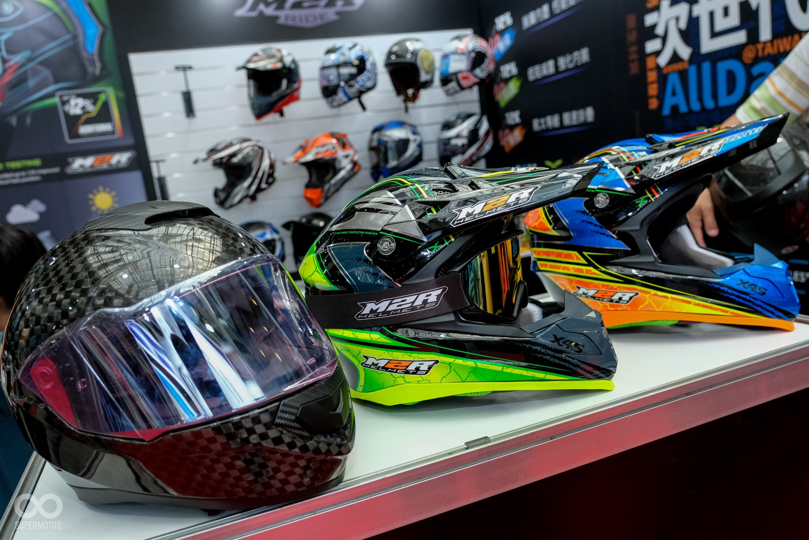 或許許多朋友18歲剛接觸機車時,購入的第一頂安全帽便是國產品牌M2R的帽子,M2R當然也沒有缺席這次的盛會,在本屆機車零配件大展除了展示多樣化帽款外,更展出兩樣引人注目的產品,全新的碳纖維帽以及變色鏡片。