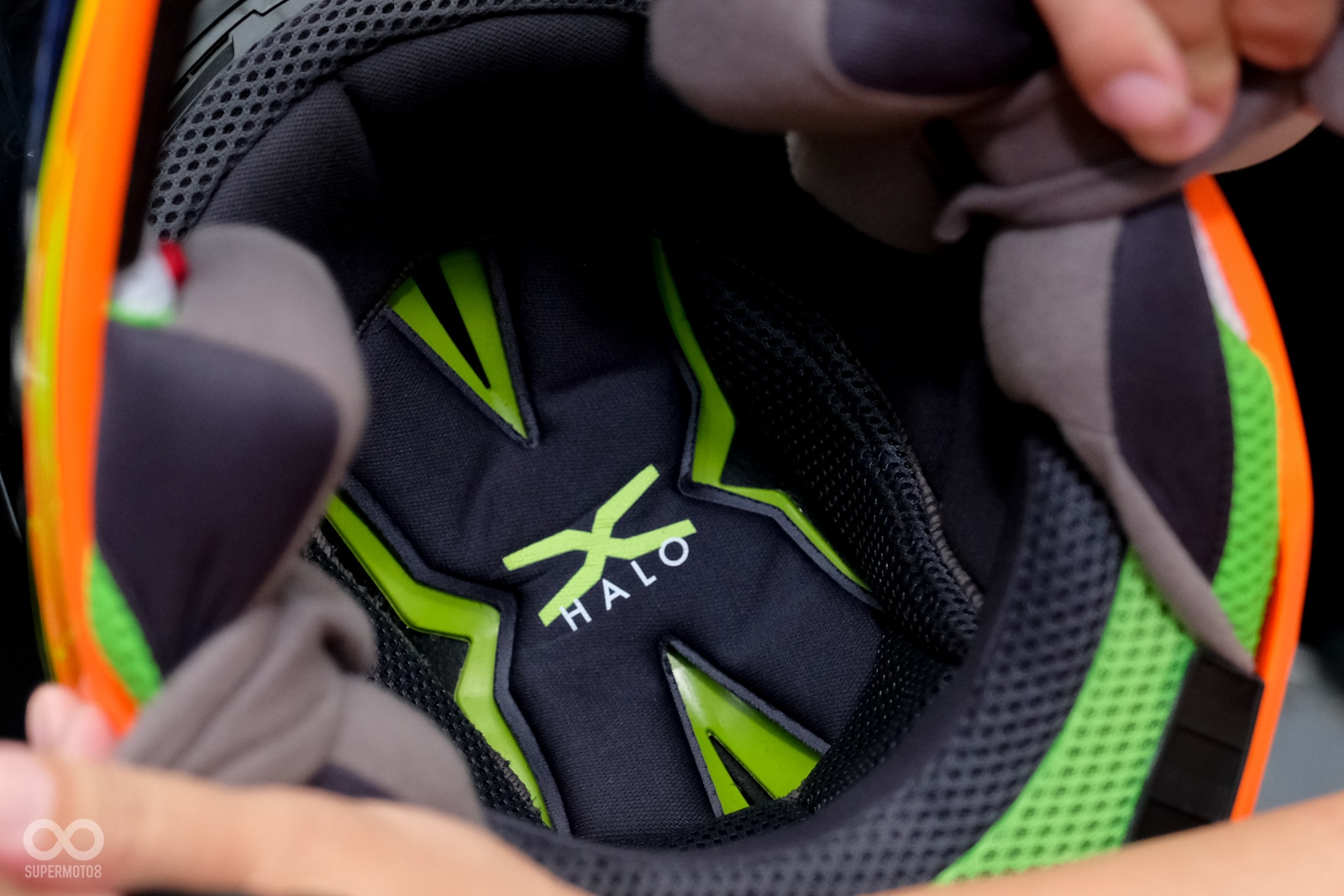 除了變色鏡片展示外,現場也展示了即將上市的全新碳纖維安全帽,未來將會預計以多種不同的碳纖維編織花色推出,並搭配變色鏡片一並販售,強調高階產品的商品價值,同時越野帽款也導入全新設計的X-HALO專利減震技術,相較於現有技術可以提昇12%的防護效果。