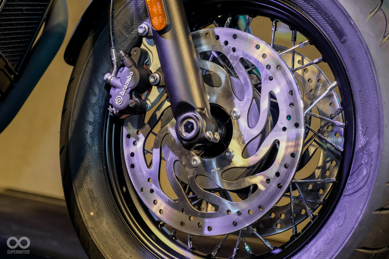 前總成的改變可不僅於此,前煞車系統由過往的Nissin單向雙活塞卡鉗搭配310mm“單碟”改為Brembo雙活塞卡鉗配上310mm“雙”碟,加上前輪改為16吋輪框以及低矮的前土除,雖然碟盤的尺寸不變,但是視覺效果可是飽滿許多。