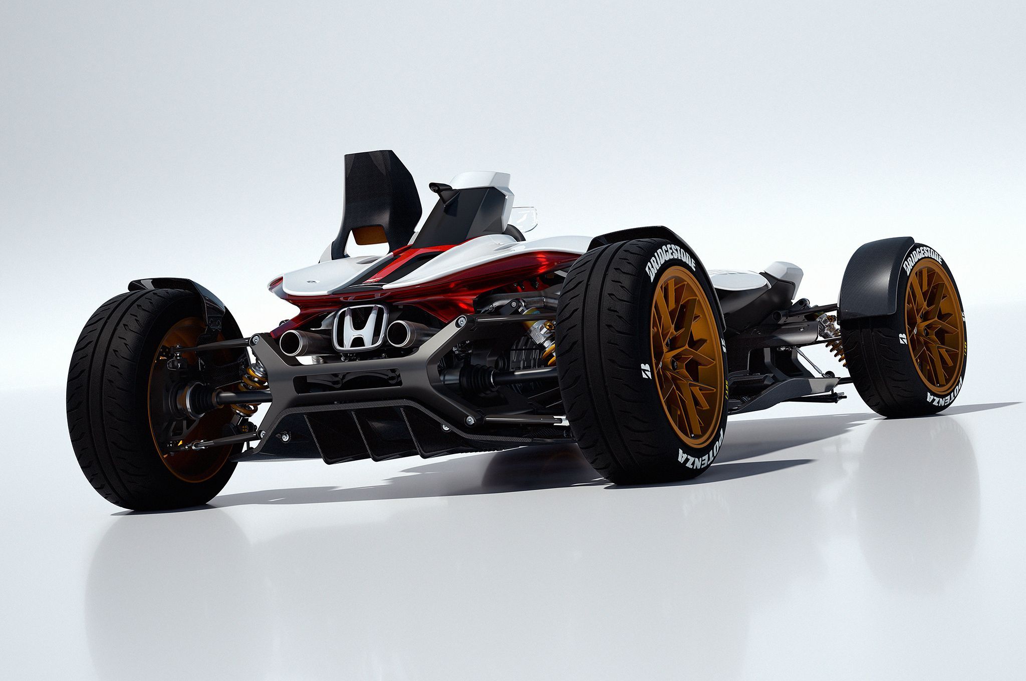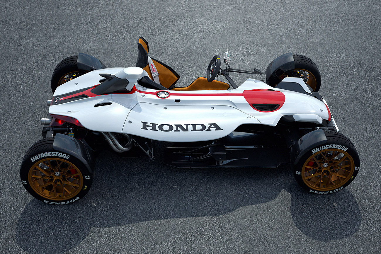 外觀看起來有經典1965年HONDA F1賽車RA272的氛圍,本田將它命名為Lightweight Project 2&4,他是由二輪部所主導、四輪部為輔的方式合作而生,將摩托車與汽車兩者最吸引人的特點結合,創造出一輛擁有強烈駕駛風格的載具。