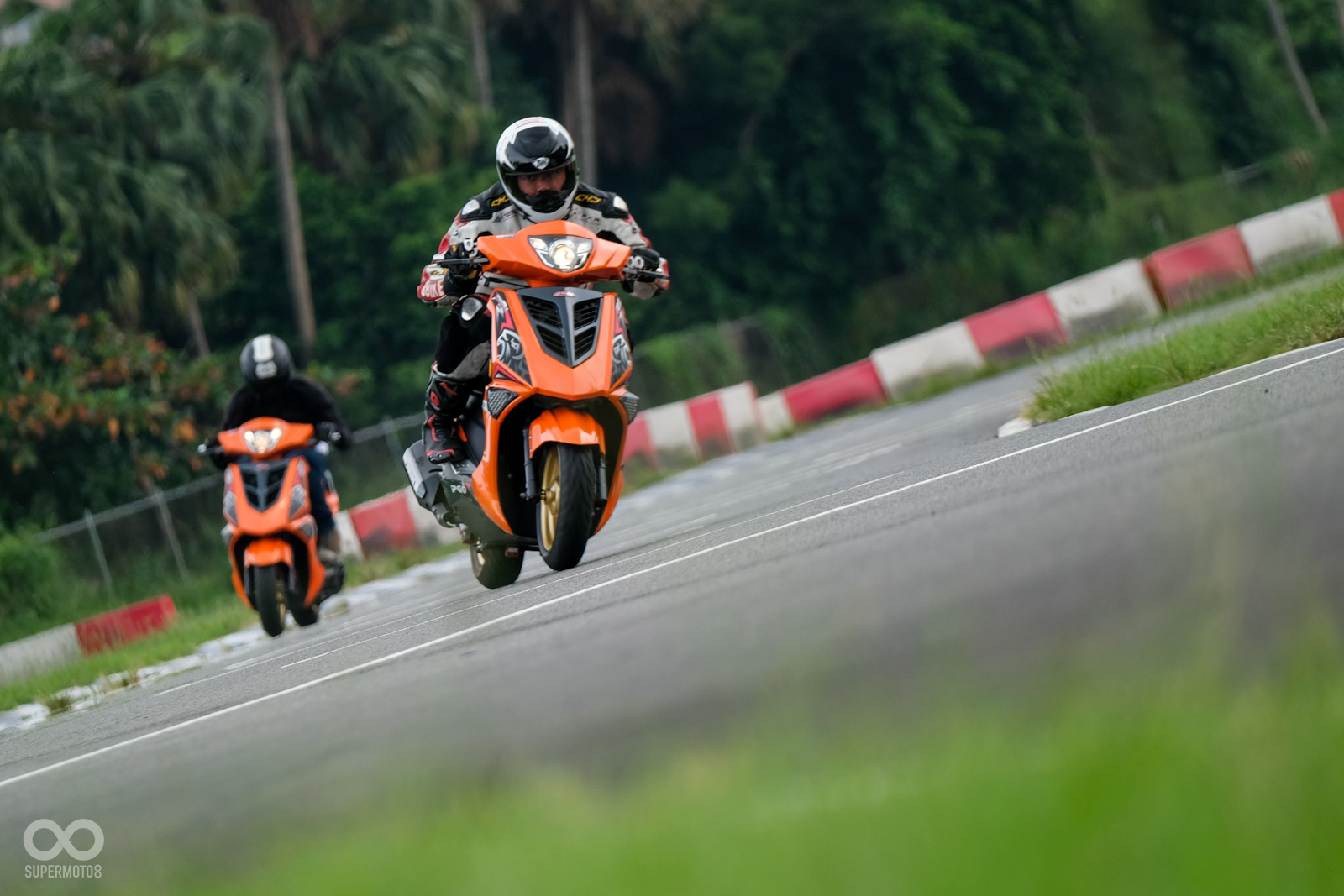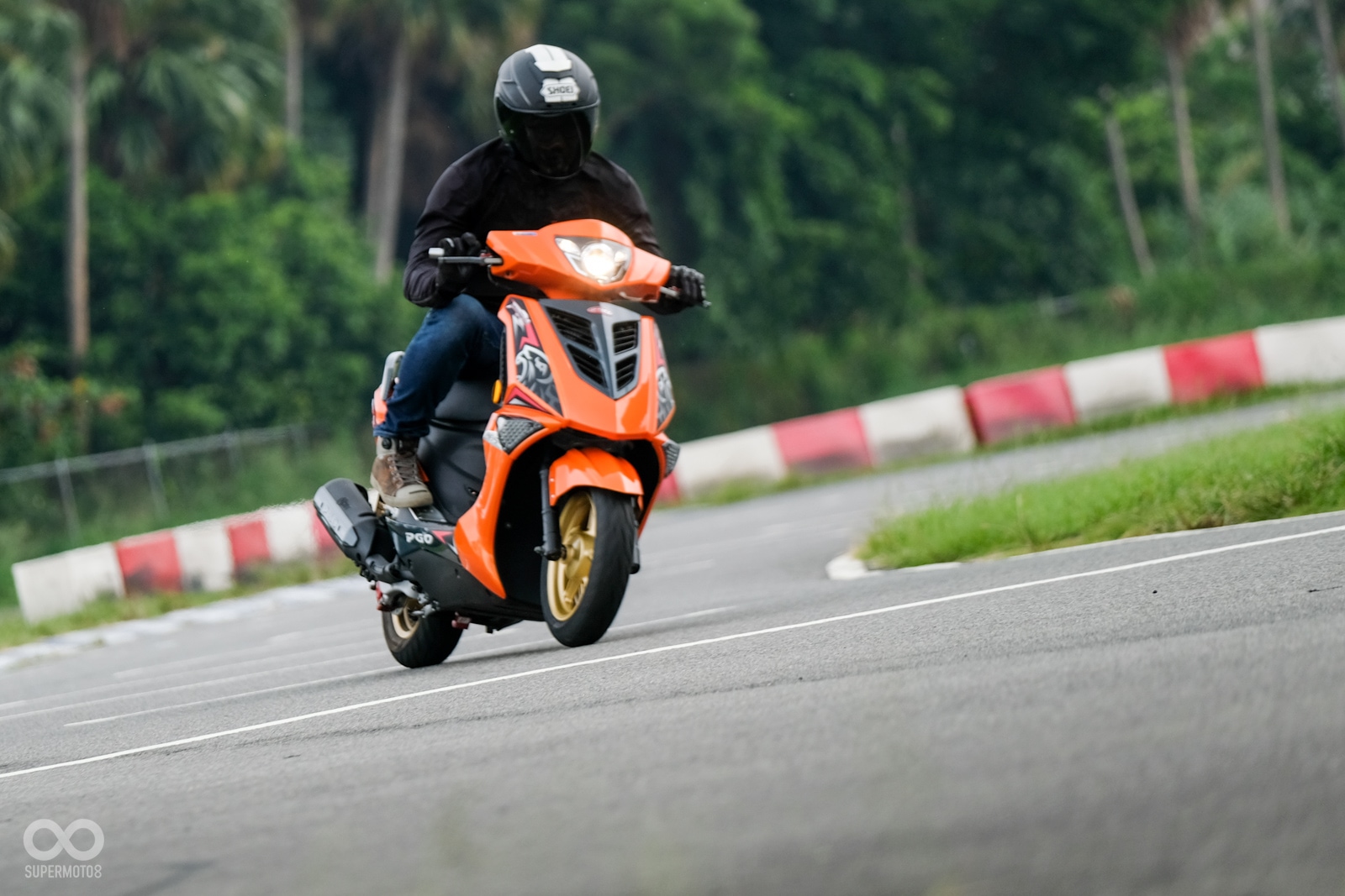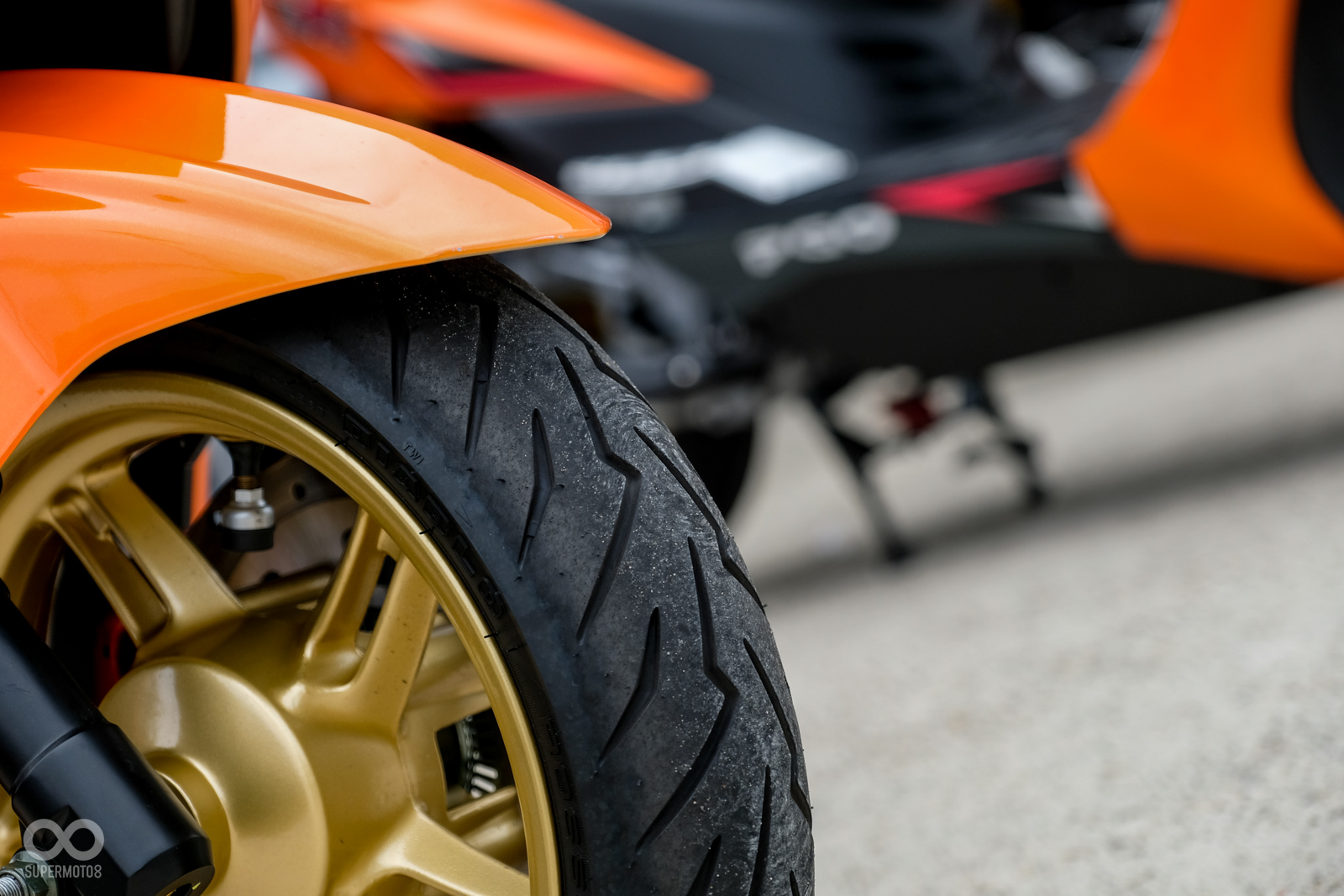 DIABLO ROSSO SCOOTER紅惡魔胎採用了複合曲率胎型的設計,讓車胎在中央的部分能夠擁有更佳的穩定性,並且在兩側漸進式的曲率設計下,又能增強左右傾倒時的靈敏度,在桃園大魯閣這樣較為彎曲的小場地中,更可以明顯感受到這組原廠胎的強大優勢。